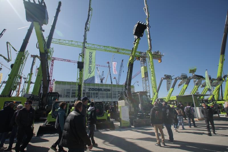 ▲德國寶馬展中聯(lián)重科展區(qū)客商絡(luò)繹不絕