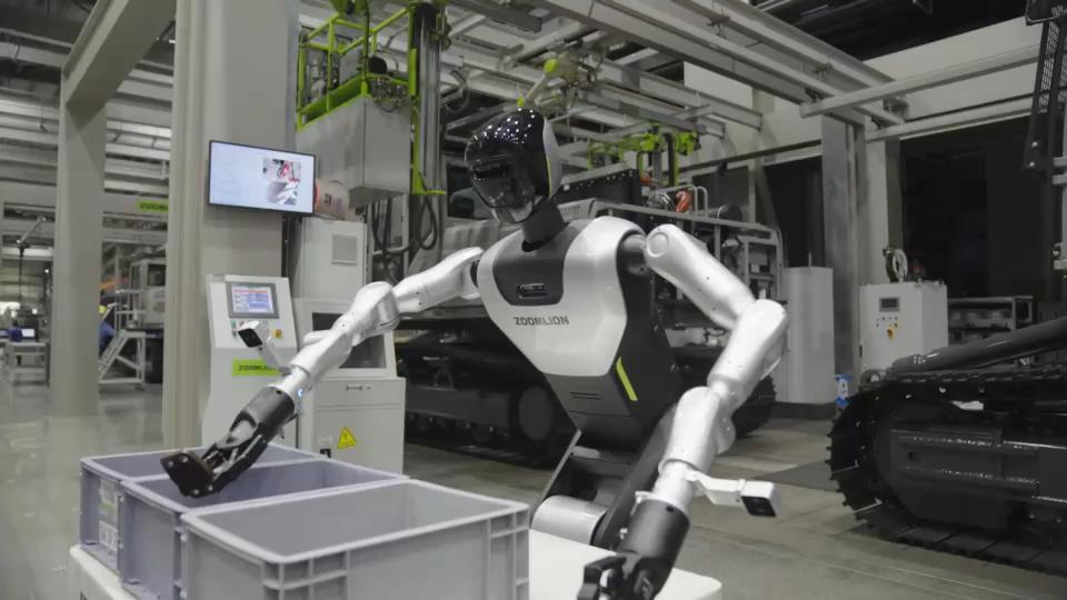 中聯(lián)重科自主研發(fā)的人形機(jī)器人在裝配產(chǎn)線作業(yè)