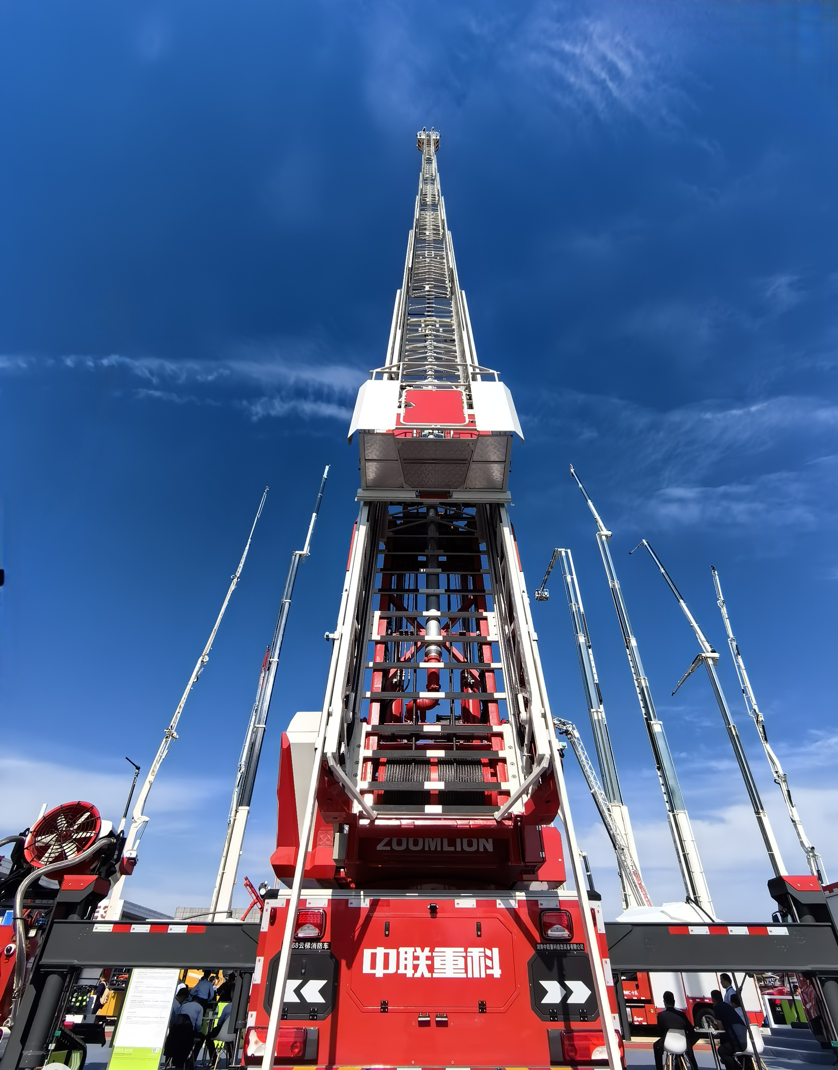 在舉高消防車這一公司傳統(tǒng)優(yōu)勢(shì)領(lǐng)域,中聯(lián)重科再度刷新“全球之**”、“行業(yè)之**”,以更智能、更安全、更高效的創(chuàng)新產(chǎn)品樹立行業(yè)新標(biāo)桿。此次首發(fā)的全球**高68米直臂云梯消防車YT68,配備同步伸縮梯架、工作斗、滑斗、水路系統(tǒng),擁有強(qiáng)大的高空救援和滅火能力。它搭載了中聯(lián)重科潛心研發(fā)的5大核心技術(shù),包括獨(dú)創(chuàng)梯架變幅快速啟停技術(shù)、國(guó)內(nèi)首創(chuàng)液壓伸縮止動(dòng)技術(shù)等,在智能化技術(shù)等方面穩(wěn)居國(guó)內(nèi)領(lǐng)先水平,實(shí)現(xiàn)了高層建筑救援效率更高、操作體驗(yàn)更好、作業(yè)運(yùn)行更安全。