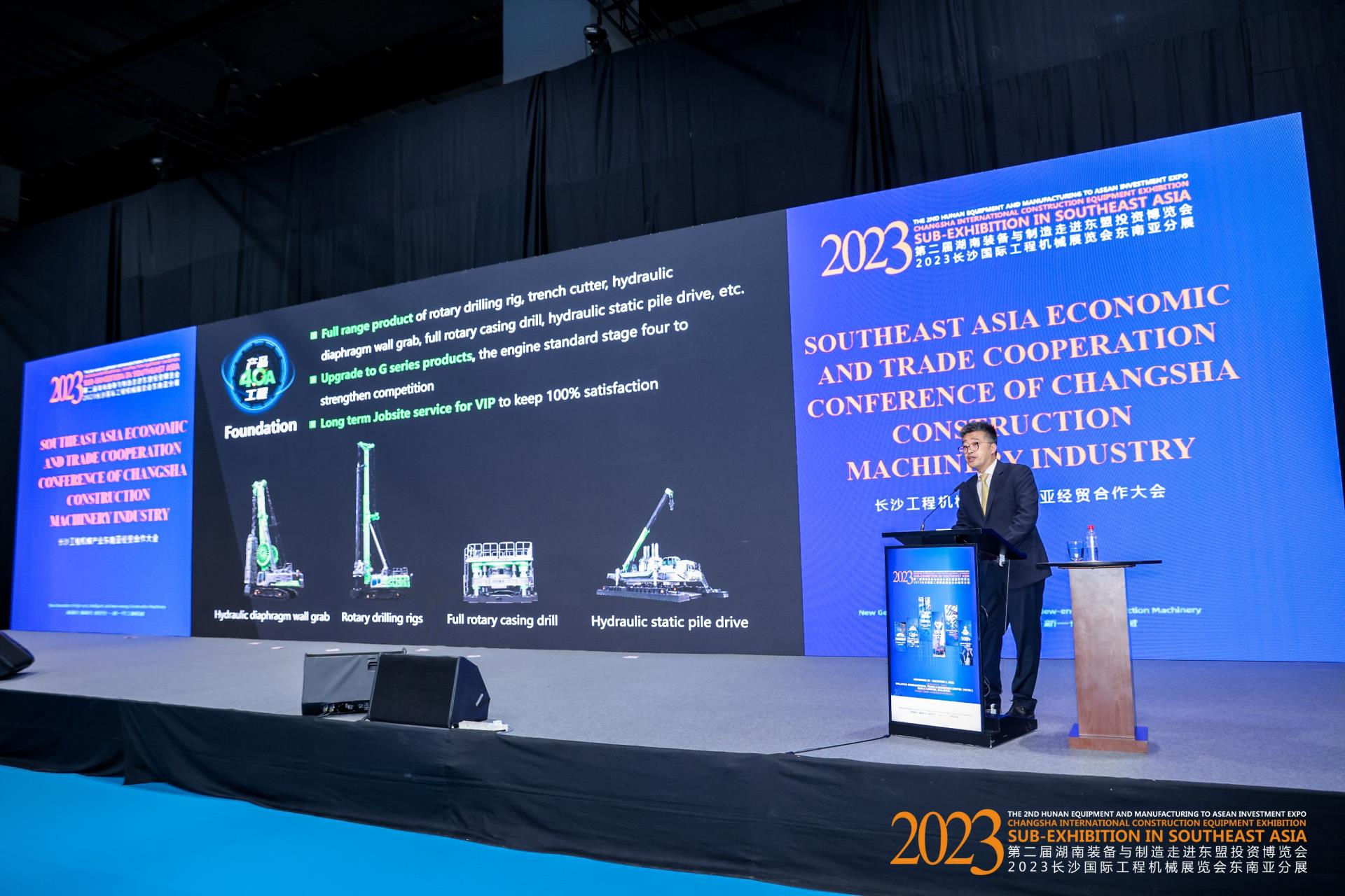 隨后的開幕式上,中聯(lián)重科馬來西亞子公司國(guó)家副經(jīng)理荊征發(fā)表致辭。荊征回顧了中聯(lián)重科在全球范圍內(nèi)的發(fā)展歷程,重點(diǎn)分享了公司在東南亞市場(chǎng)的投入和取得的成就,表示公司將繼續(xù)為當(dāng)?shù)乜蛻籼峁┳吭降漠a(chǎn)品和服務(wù)。中聯(lián)重科還與馬來西亞團(tuán)毅力、豐成兩家公司達(dá)成合作,工程起重機(jī)械和土方機(jī)械設(shè)備的簽約總額達(dá)1億人民幣。