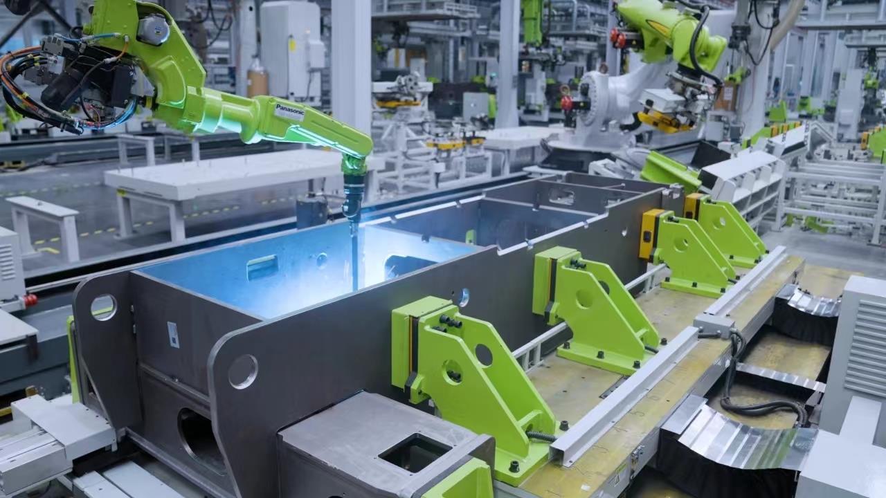 △中聯(lián)重科智能高機臂式車架轉臺結構車間人機協(xié)同制造場景