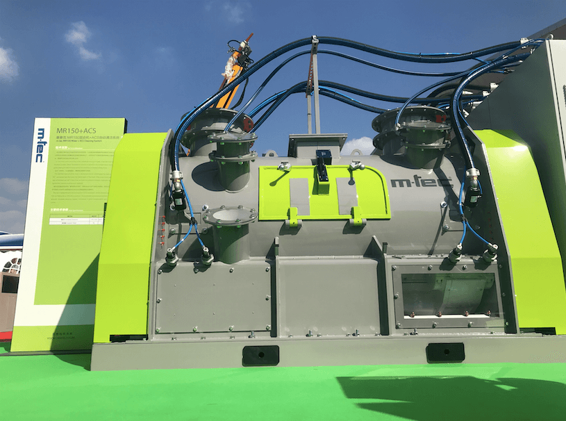 與濕噴機相比,位于該展位的中聯(lián)重科德國m-tec的干混砂漿設備則顯得小而精。個頭雖小,卻是智慧和科技的結晶,并且極具“前沿感”。中聯(lián)重科m-tec(中國)總經(jīng)理楊健介紹道:“m-tec亮相本次展會的是5款業(yè)界領先的干混砂漿設備。其中,MR 3D混合機+ACS自動清潔系統(tǒng)也是此次參展的重頭產(chǎn)品。這款產(chǎn)品經(jīng)過精密計算和設計的混合機筒體及密封結構、以及滿足各種參數(shù)要求的混合刀具,可迅速使物料達到99.5%以上的均勻度,小時產(chǎn)能達15-200噸,能夠從容應對各種粉料、骨材、微量添加劑、纖維、顏料的高質(zhì)量混合要求,滿足3D砂漿及包括超高性能混凝土等各種復雜配方的高效率高質(zhì)量生產(chǎn)?!?/span>