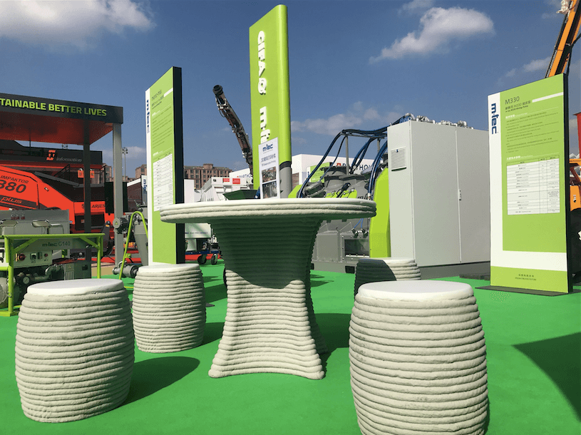 展位現(xiàn)場,一套3D打印的桌凳讓觀眾倍感新奇。楊健介紹道:“這套桌凳的原材料便是MR 3D混合機+ACS自動清潔系統(tǒng)生產(chǎn)的打印砂漿,并通過duo-mix connect連接后打印而成。”此外,亮相展會的還有mono-mix、M330混漿泵,G140氣力輸送泵3款產(chǎn)品。G140氣力輸送泵憑借強大的輸送能力和較強的材料適應性,在砂漿高層輸送設備中更是占據(jù)著王者地位,以全自動運行、輸送高度高、無需清洗管道等顯著優(yōu)勢廣受客戶青睞。