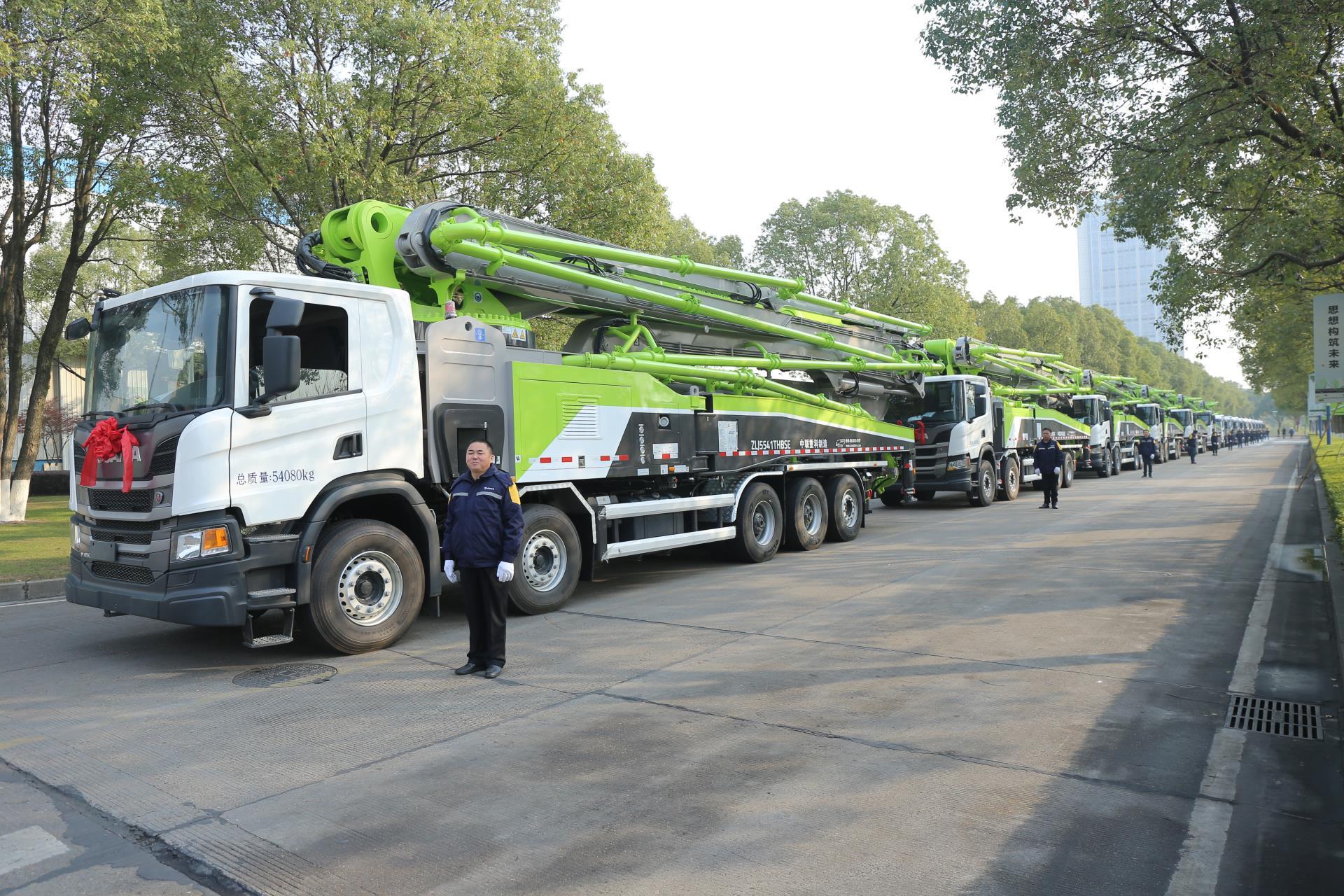 ▲中聯(lián)重科國六混凝土泵車整裝待發(fā)
