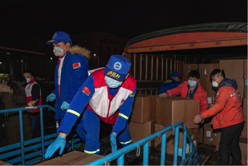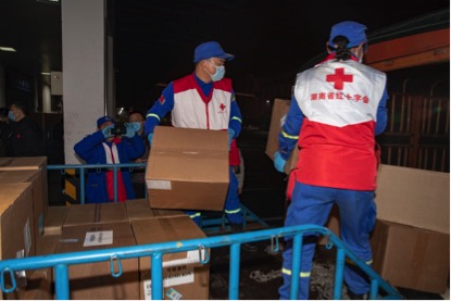 △中聯(lián)重科采購的疫情防護(hù)物資運(yùn)抵長沙后立即交接給湖南省紅十字會(huì)