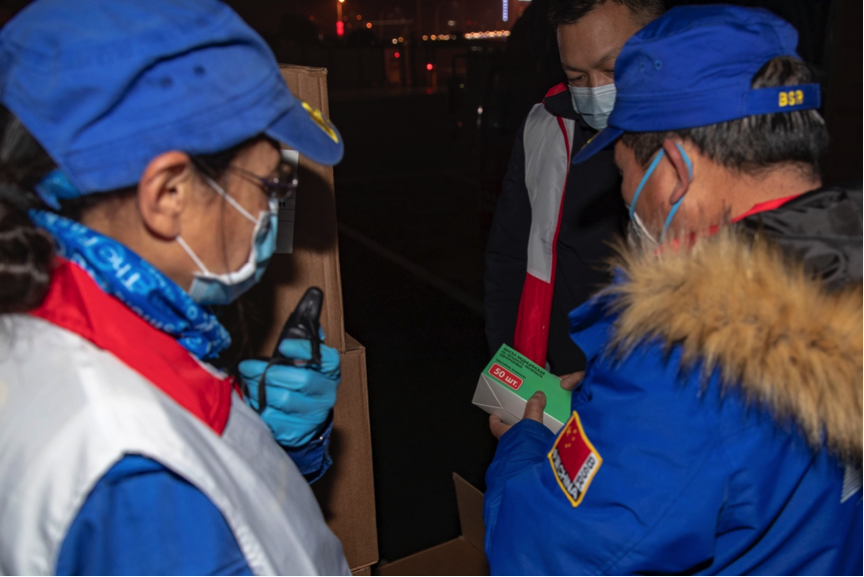 △湖南省紅十字會(huì)查驗(yàn)中聯(lián)重科捐贈(zèng)的疫情防護(hù)物資