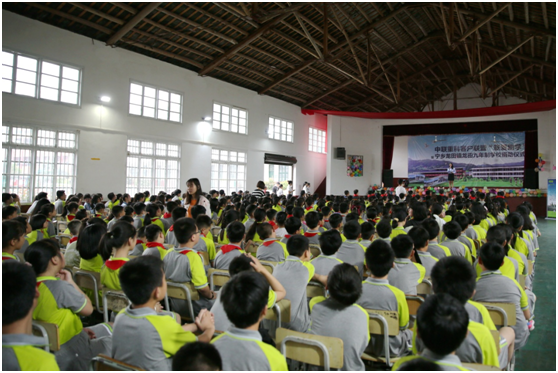 ▲湖南寧鄉(xiāng)市龍?zhí)镦?zhèn)九年制學(xué)校中聯(lián)重科客戶聯(lián)盟“聯(lián)愛助學(xué)”活動現(xiàn)場
