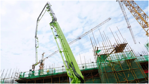 △中聯(lián)重科汕德卡底盤(pán)泵車在施工現(xiàn)場(chǎng)