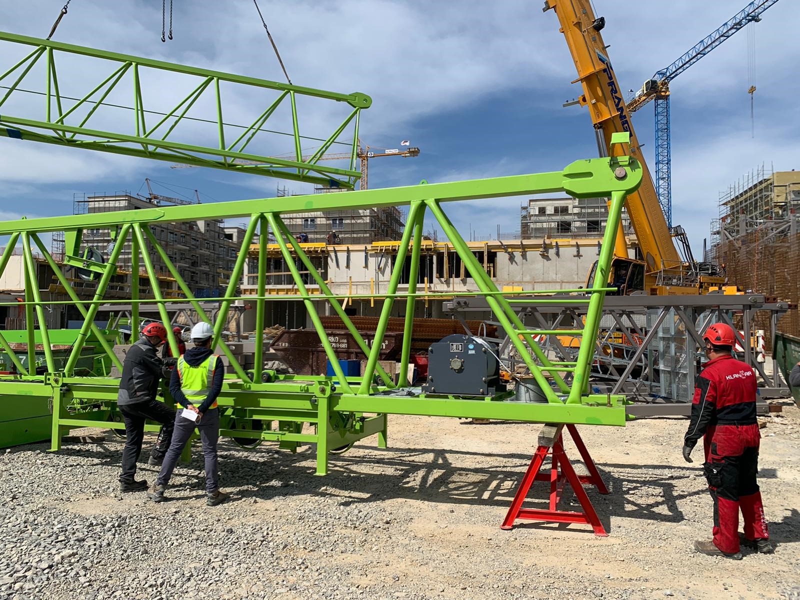 △在斯洛文尼亞某項(xiàng)目現(xiàn)場(chǎng)當(dāng)?shù)厝藛T正在組裝中聯(lián)重科塔機(jī)