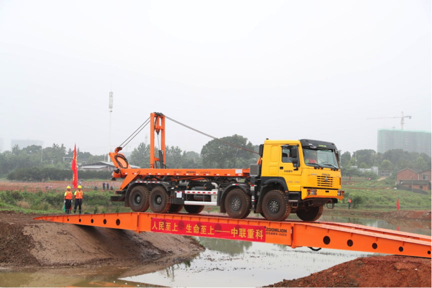 △中聯(lián)重科重型工程機械應急救援隊迅速搭建臨時橋梁