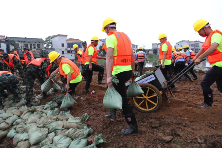 △中聯(lián)重科重型工程機械應急救援隊緊張有序地進行封堵決口