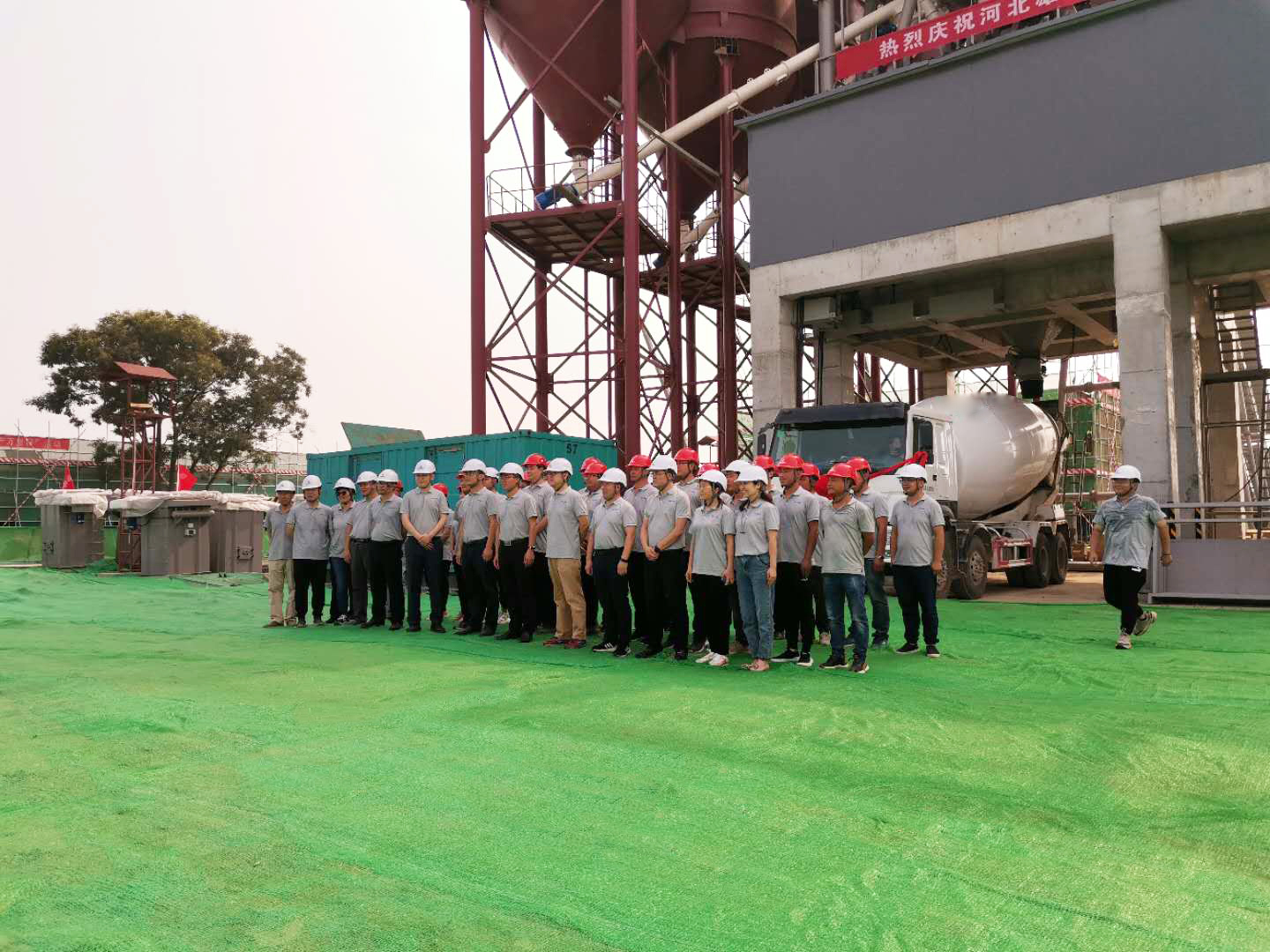 △中聯(lián)重科建設(shè)打造的雄安二號(hào)攪拌站成功出料儀式現(xiàn)場(chǎng)
