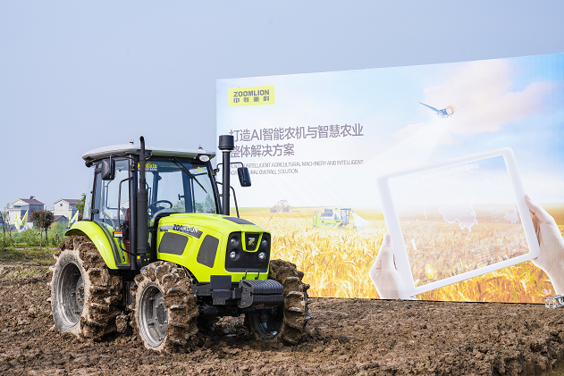 △活動現(xiàn)場展示的中聯(lián)智慧農(nóng)業(yè)數(shù)據(jù)采集設(shè)備及高端大馬力拖拉機(jī)