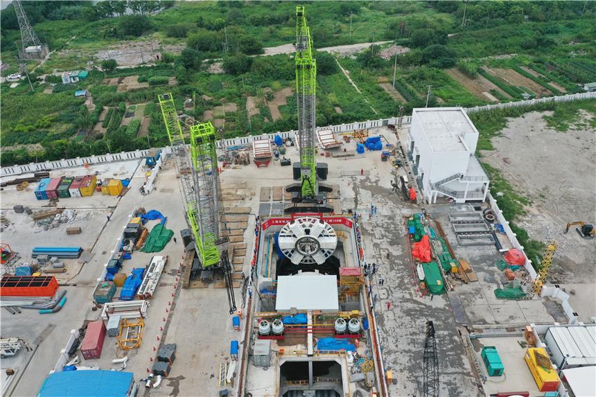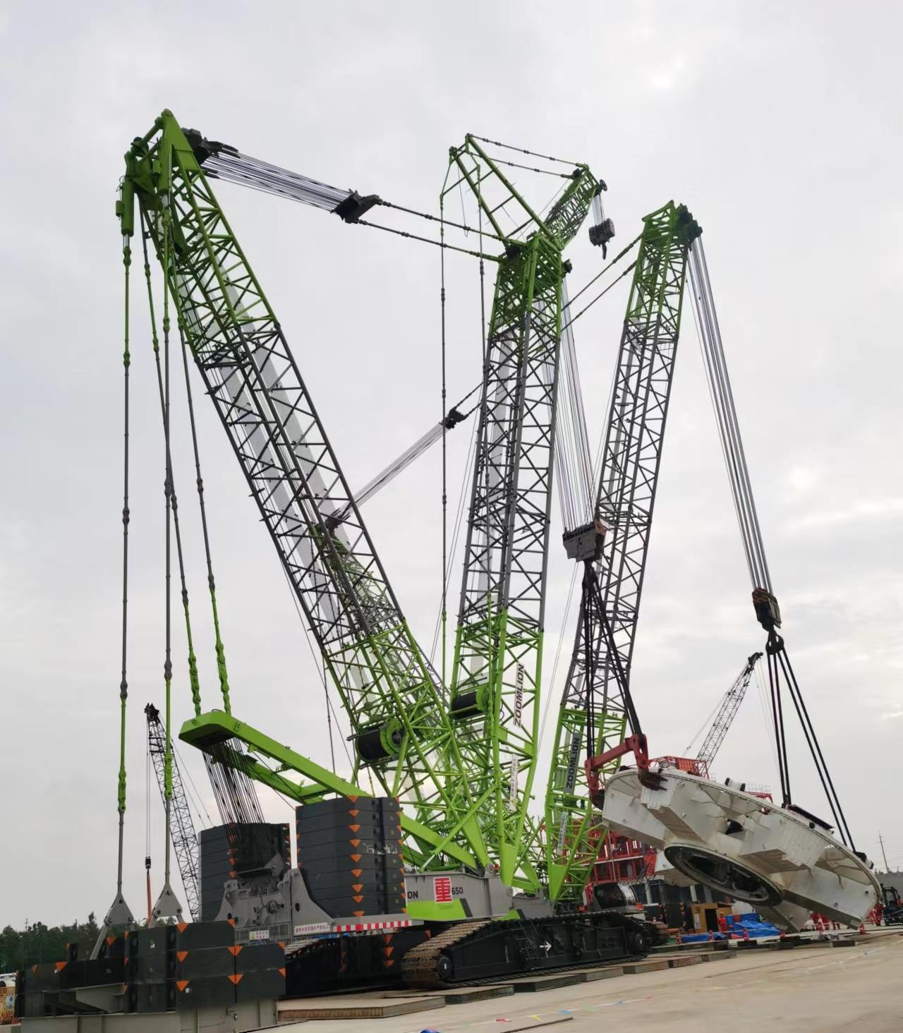 據(jù)了解,此次項(xiàng)目吊裝的“申通號(hào)”盾構(gòu)機(jī)總長(zhǎng)為148米,采用常壓刀盤設(shè)計(jì)。盾構(gòu)機(jī)刀盤直徑有13.5米,重達(dá)308噸,由一個(gè)中心塊、6個(gè)主刀臂和6個(gè)輔刀臂焊接拼裝組成。中聯(lián)重科兩臺(tái)履帶起重機(jī)吊裝“申通號(hào)”盾構(gòu)機(jī)下井,為其完成崇明線南港越江段區(qū)間的掘進(jìn)施工提供助力。全長(zhǎng)7.74千米的南港區(qū)間隧道貫通后,將成為“上海軌道穿越長(zhǎng)江**一隧”。
