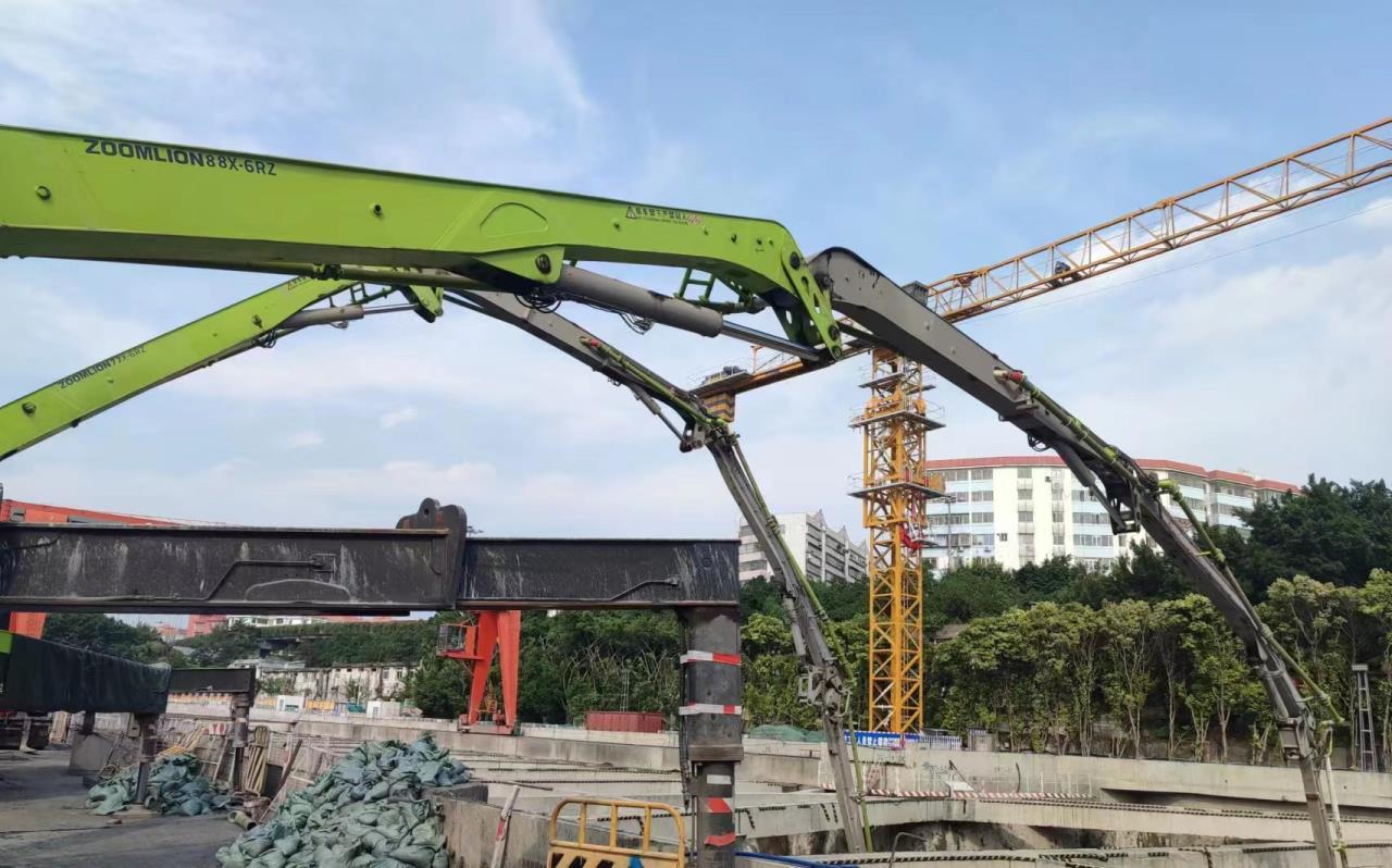 作為廣州地鐵集團(tuán)“總部級(jí)”風(fēng)險(xiǎn)重點(diǎn)管控點(diǎn)之一,該站共需澆筑混凝土約10萬(wàn)方,為確保施工質(zhì)量和施工進(jìn)度,同時(shí)嚴(yán)格落實(shí)風(fēng)險(xiǎn)管控,項(xiàng)目方選用了中聯(lián)重科“凌云”系列67米、59米長(zhǎng)臂架泵車(chē)承擔(dān)任務(wù)。