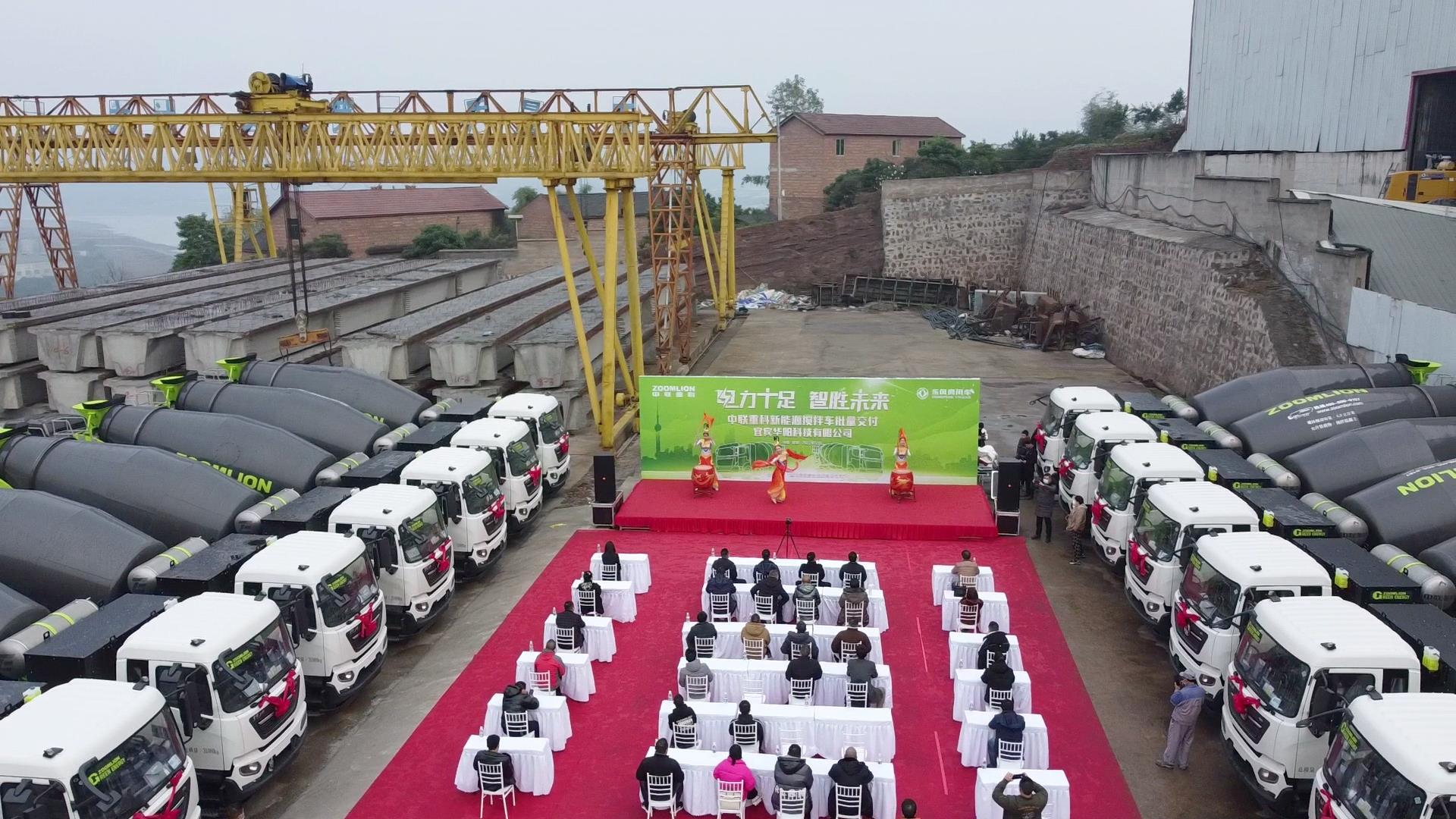 12月29日上午,20臺中聯(lián)重科充電式攪拌車頭戴紅花整齊列陣,批量交付宜賓華陽科技有限公司。冬日暖陽下,醒目的極光綠熠熠生輝,這批新能源匠心精品將以極致性能、強(qiáng)勁節(jié)能,為客戶鋪就綠色低碳的快速發(fā)展之路。