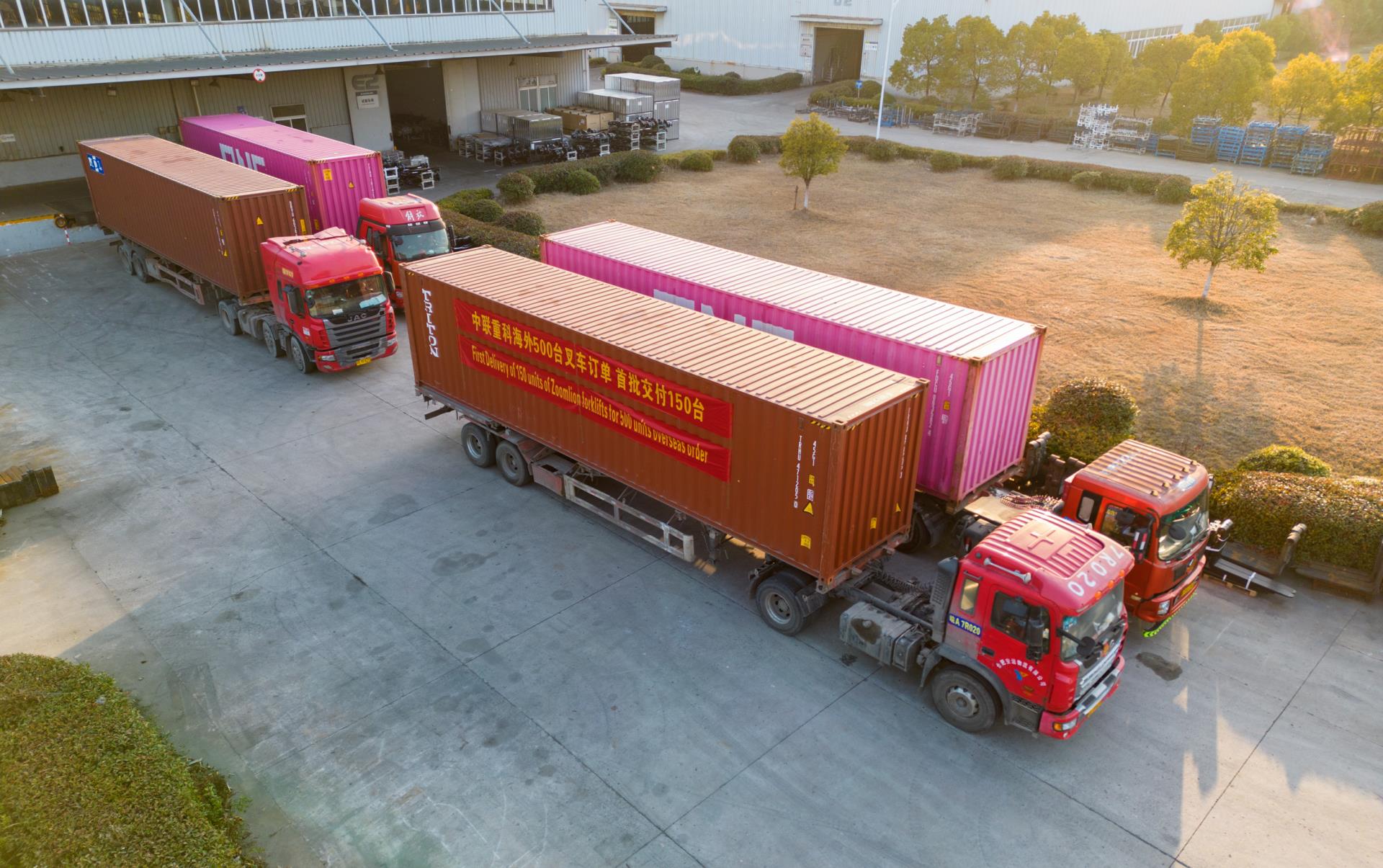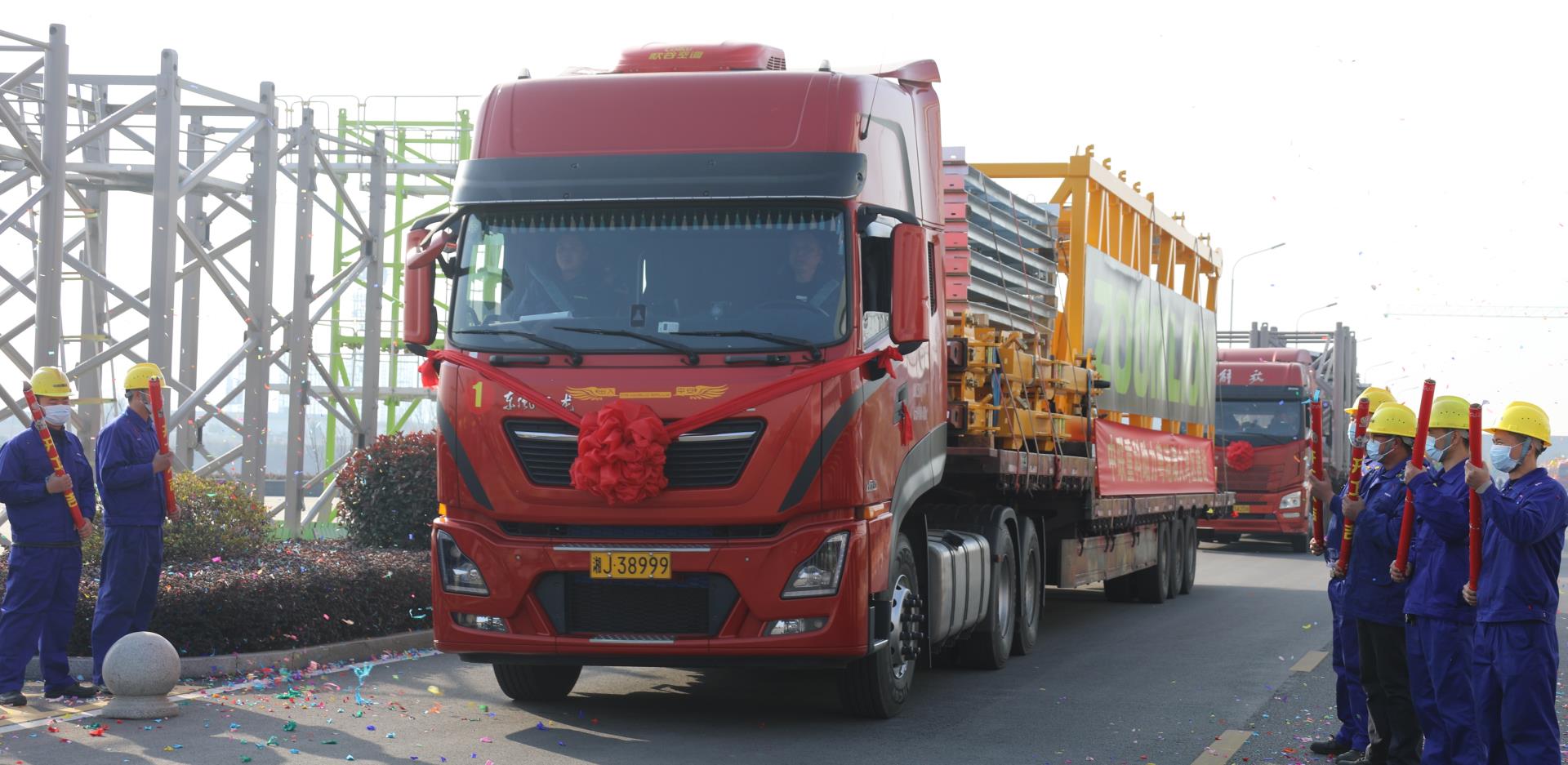 ▲中聯(lián)重科工業(yè)車輛開門紅批量發(fā)往海外