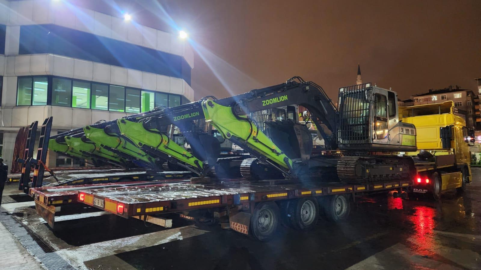 地震發(fā)生后,根據公司指示,中聯(lián)重科土耳其子公司立即派出由專業(yè)服務工程師、機手組成的救援團隊,攜帶災區(qū)急需的電熱毯、應急藥品、食品等物資,與首批5臺挖掘機設備連夜啟程,趕往災區(qū)。