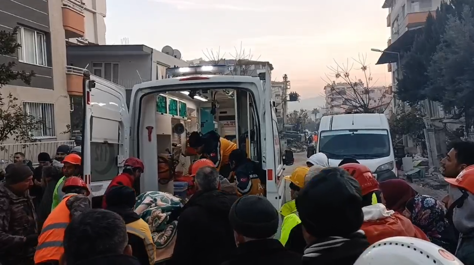 ▲當(dāng)?shù)貢r間2月10日11時45分,中聯(lián)重科救援隊(duì)協(xié)助救出一名被困婦女