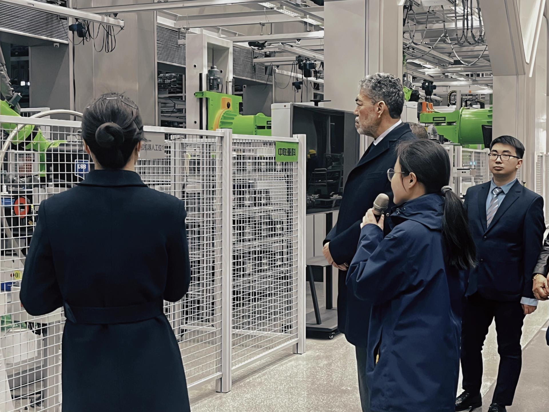 ▲梅希亞一行參觀中聯(lián)重科的智能工廠