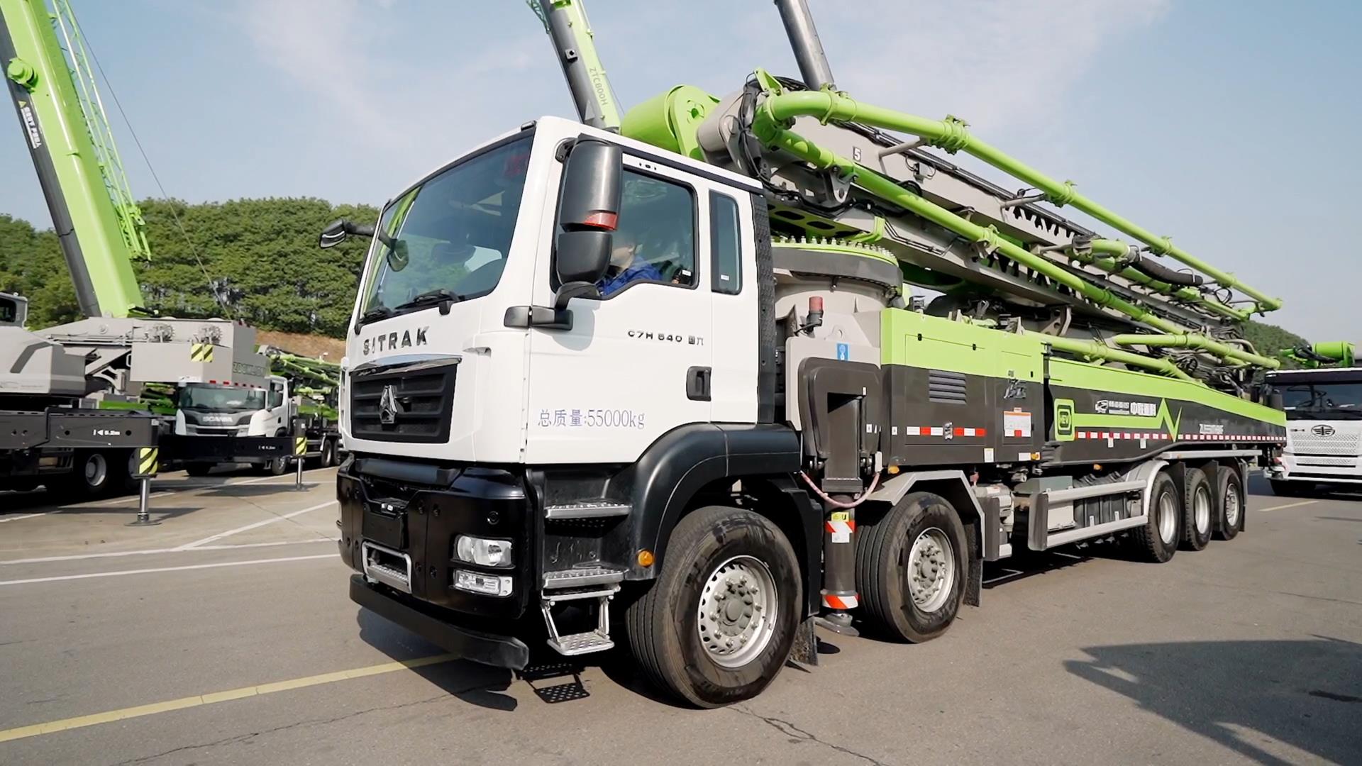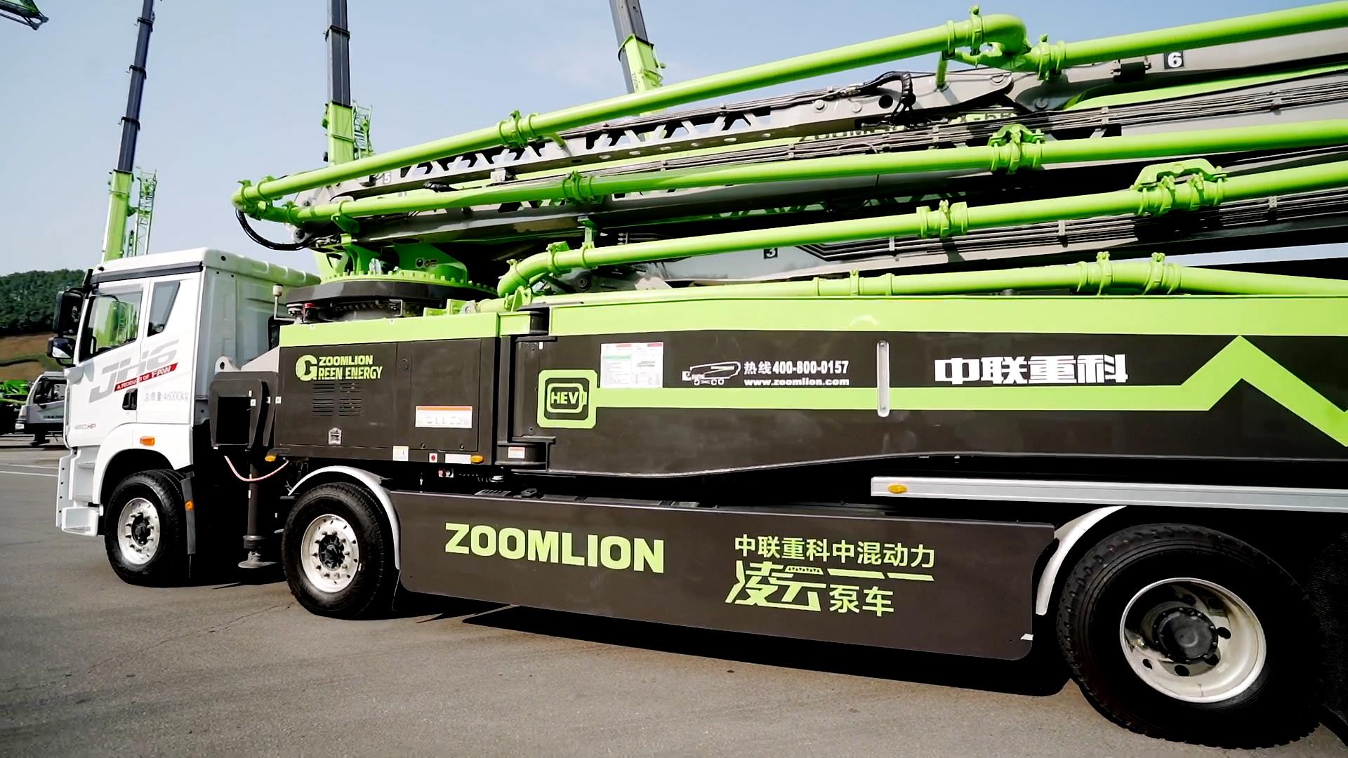 ▲中聯(lián)重科推出的62米中混泵車(chē)