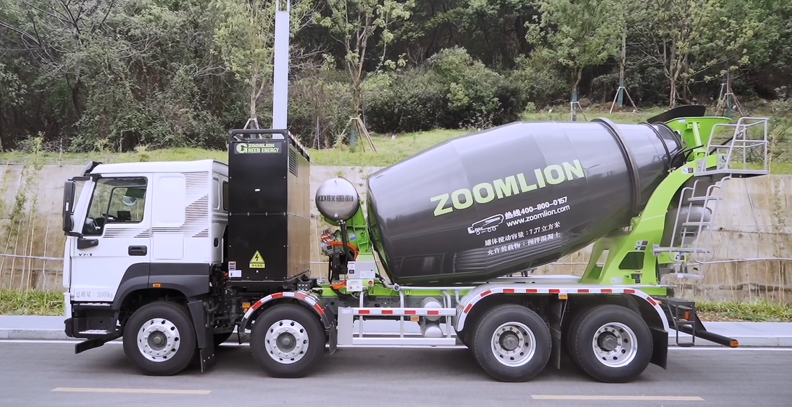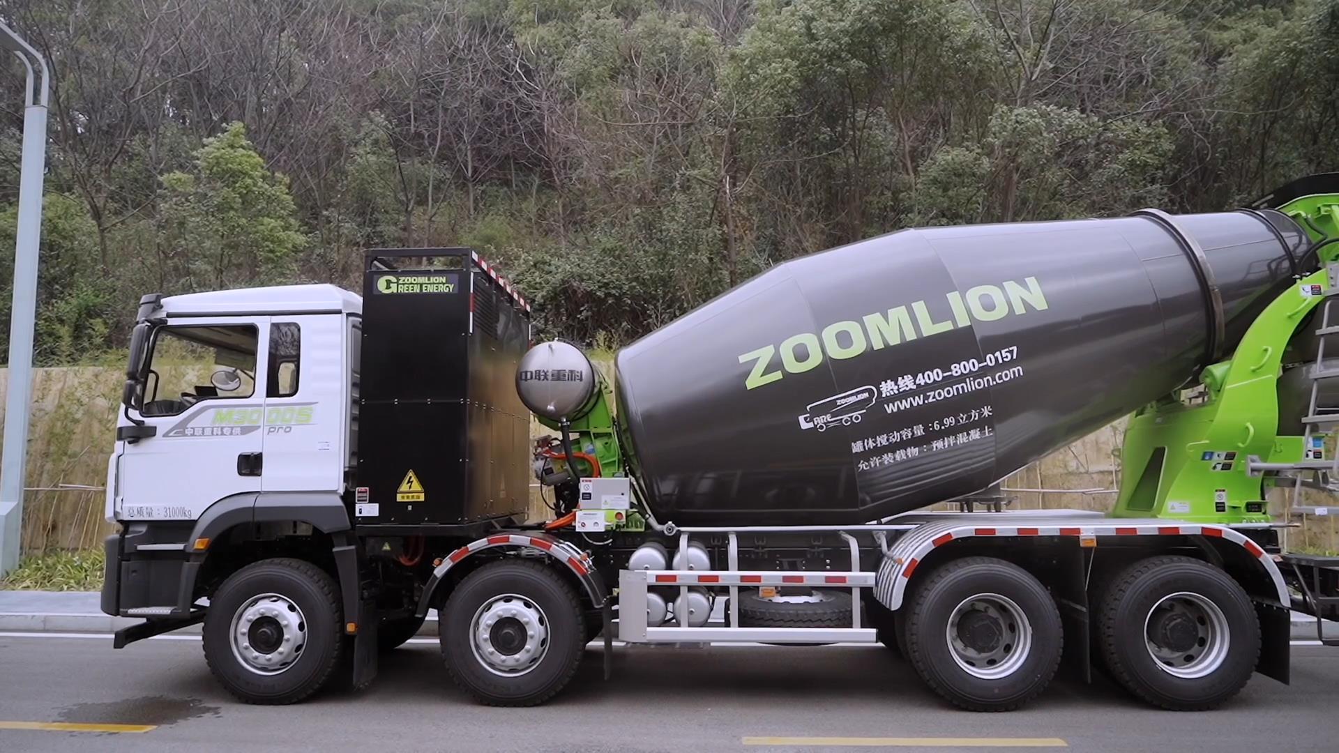 ▲中聯(lián)重科打造的輕量化純電動(dòng)攪拌車(chē)