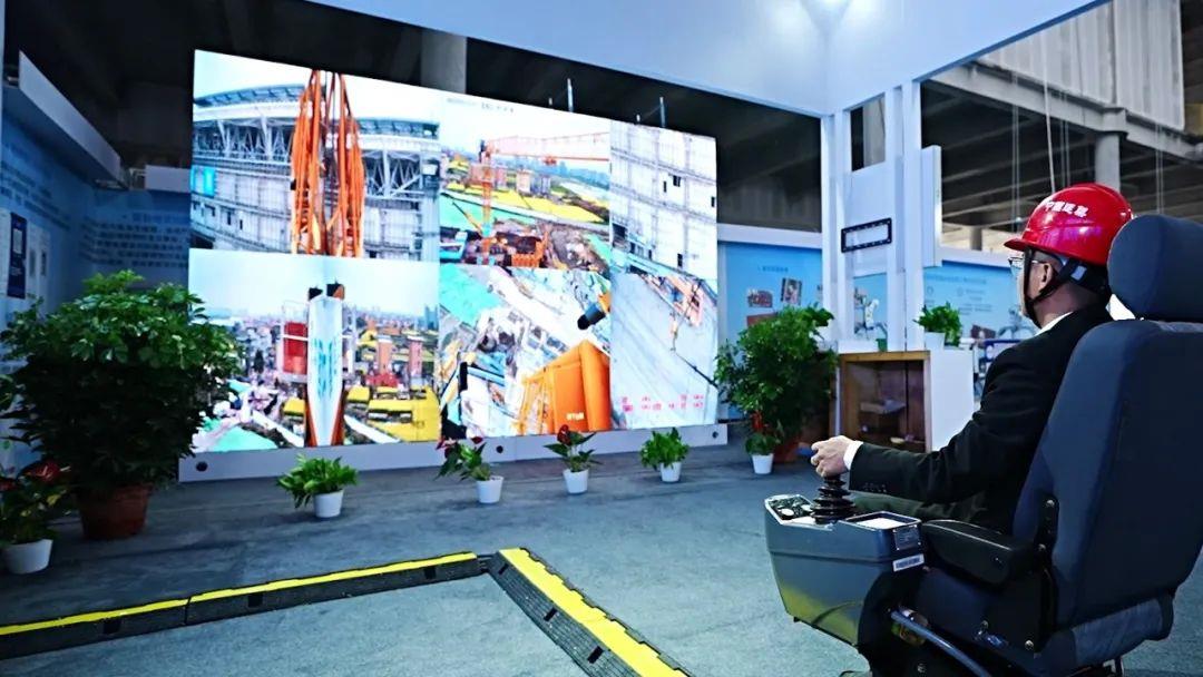 △現(xiàn)場機(jī)手5G遠(yuǎn)程操作中聯(lián)重科塔機(jī)