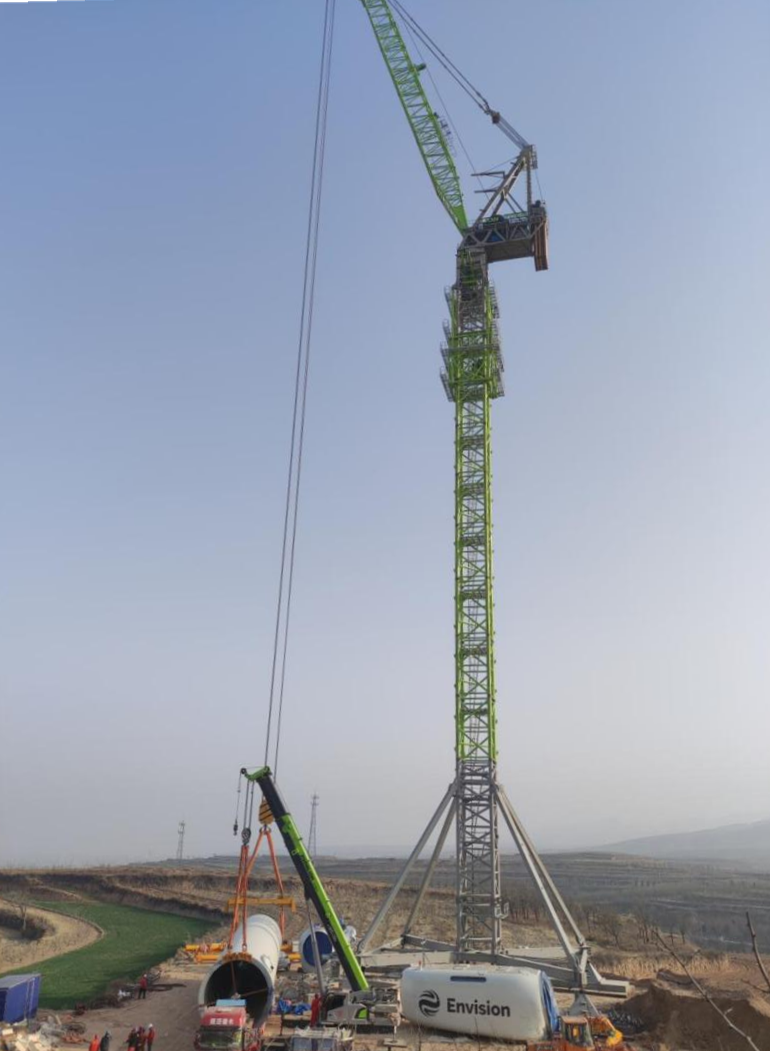 △中聯(lián)重科風(fēng)電動臂塔機(jī)LW2340-180正在吊裝