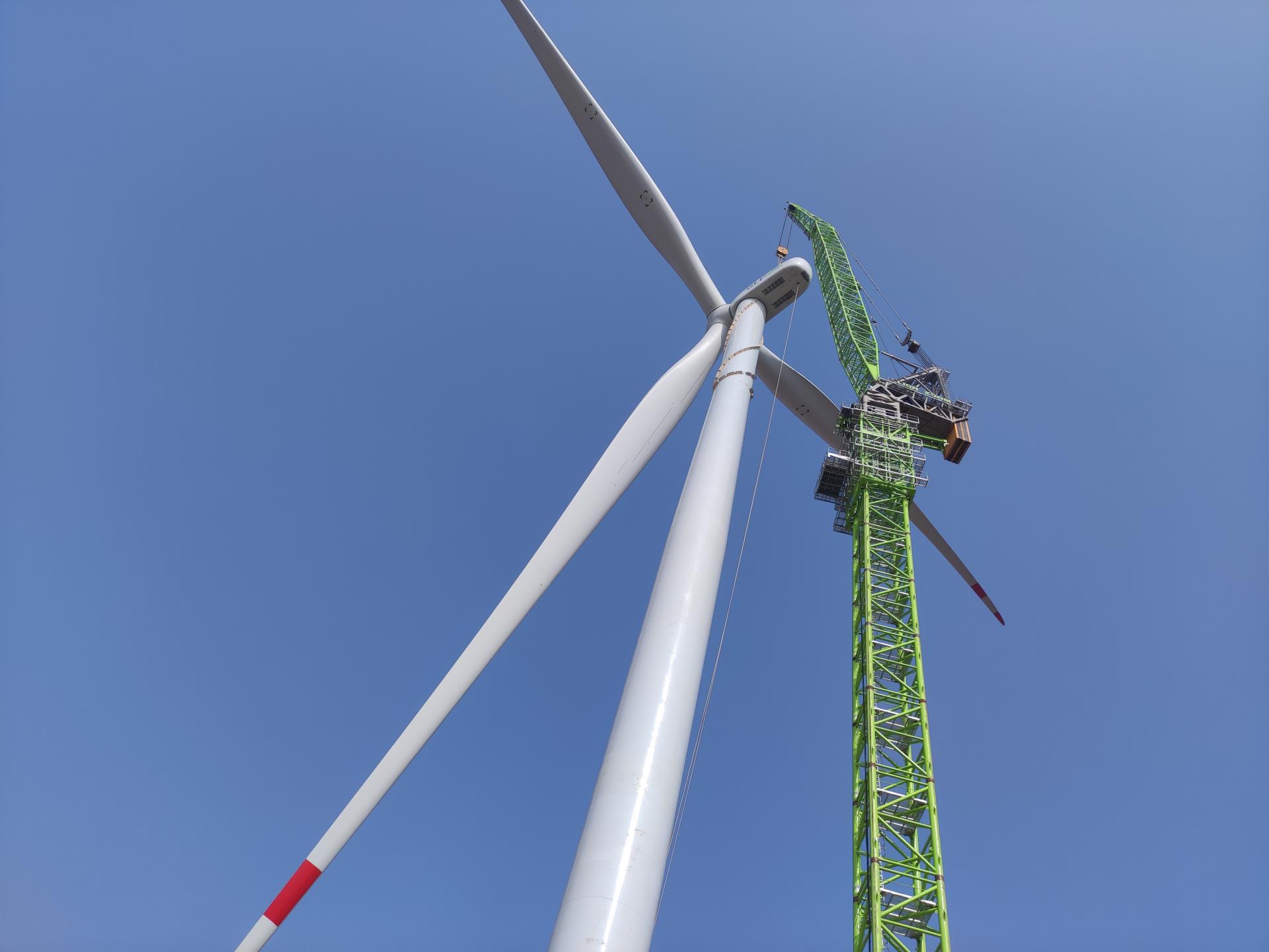 近日,山西運(yùn)城夏縣鄉(xiāng)間,一抹極光綠映襯著藍(lán)天,中聯(lián)重科LW2340-180型塔機(jī)吊鉤起落之間,將一個(gè)個(gè)風(fēng)電機(jī)組部件穩(wěn)穩(wěn)吊裝就位。在狹窄陡峭的山地丘陵,中聯(lián)重科風(fēng)電動臂塔機(jī)輕松進(jìn)場立塔,穩(wěn)定優(yōu)異的施工表現(xiàn)得到客戶高度評價(jià)。