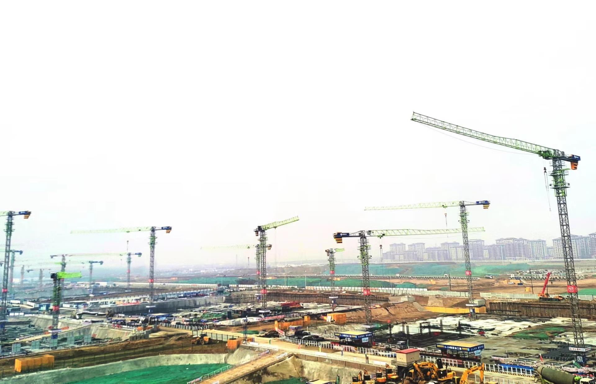 ▲中聯(lián)重科全新R代塔機(jī)挺立“未來之城”雄安