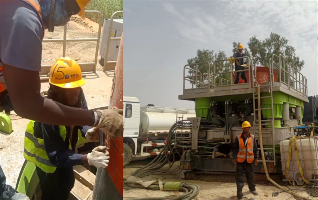 △非洲工人熟練操作全回轉(zhuǎn)鉆機(jī)