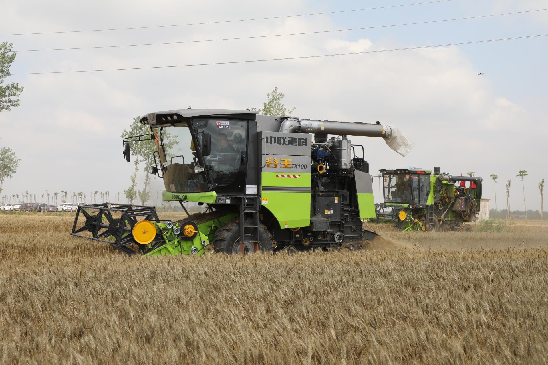 ▲中聯(lián)重科收割機(jī)正在河南省平頂山市寶豐縣前營鄉(xiāng)搶收小麥