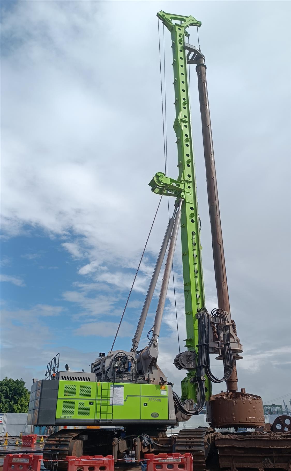 樁基施工效率直接影響橋梁建設(shè)進(jìn)度,而樁孔的垂直度則影響樁的承載能力,關(guān)系到全橋的施工質(zhì)量和安全性。在東莞一側(cè)陸地作業(yè)的ZR550G在這兩方面表現(xiàn)尤為優(yōu)異?!爸鞫湛偣?6個(gè)樁,樁徑3米,樁深59米-62米。這里地質(zhì)斜巖多,項(xiàng)目部要求垂直度很高,62米成孔偏差要求控制在30公分以內(nèi)。ZR550G的**一個(gè)樁成孔用時(shí)6天半,偏差25公分以內(nèi),當(dāng)時(shí)技術(shù)員檢測(cè)完說是全場**垂直的一個(gè)樁。”中聯(lián)重科派駐現(xiàn)場的跟機(jī)機(jī)手王師傅介紹說。