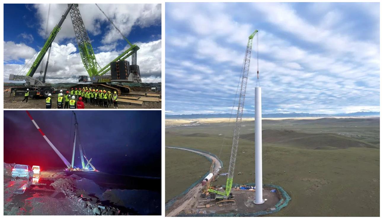 該項(xiàng)目地處高原,天氣陰晴不定,施工黃金窗口期短暫,6月以來(lái)凍土融化,道路崎嶇,大件設(shè)備運(yùn)輸、起吊艱險(xiǎn),超高海拔施工對(duì)設(shè)備的動(dòng)力、穩(wěn)定性和安全性也提出了更高的要求。面對(duì)低溫、低氧環(huán)境和高原機(jī)械設(shè)備降效等挑戰(zhàn),中聯(lián)重科履帶起重機(jī)作為主吊設(shè)備,表現(xiàn)出極強(qiáng)的工況適應(yīng)性,以強(qiáng)勁的起重能力將風(fēng)機(jī)部件逐一吊起并精準(zhǔn)組裝,全程平穩(wěn)、流暢、安全,助力**一臺(tái)機(jī)組吊裝工作順利完成。項(xiàng)目各項(xiàng)節(jié)點(diǎn)均按計(jì)劃完成,施工速度創(chuàng)造全區(qū)風(fēng)電項(xiàng)目**快紀(jì)錄。