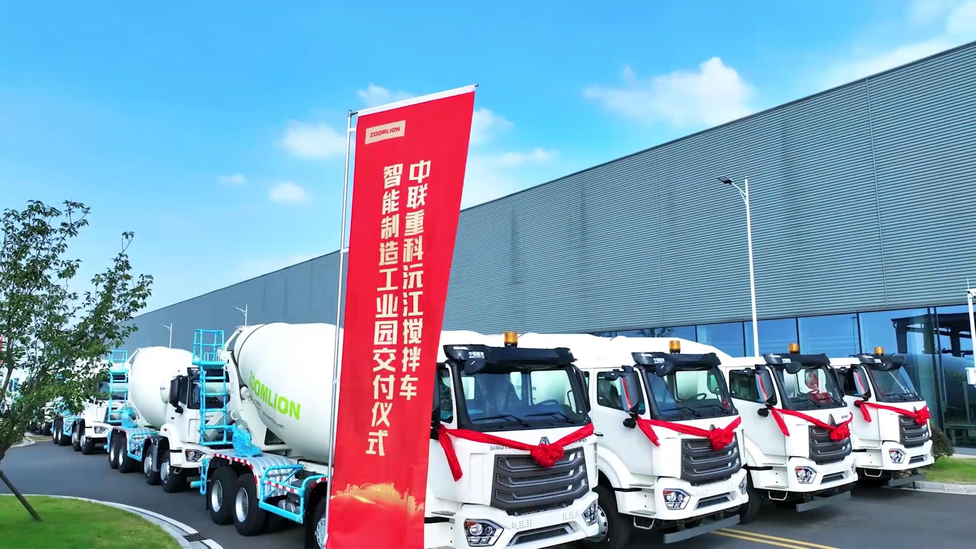 ▲中聯(lián)重科攪拌車(chē)批量出口發(fā)車(chē)現(xiàn)場(chǎng)