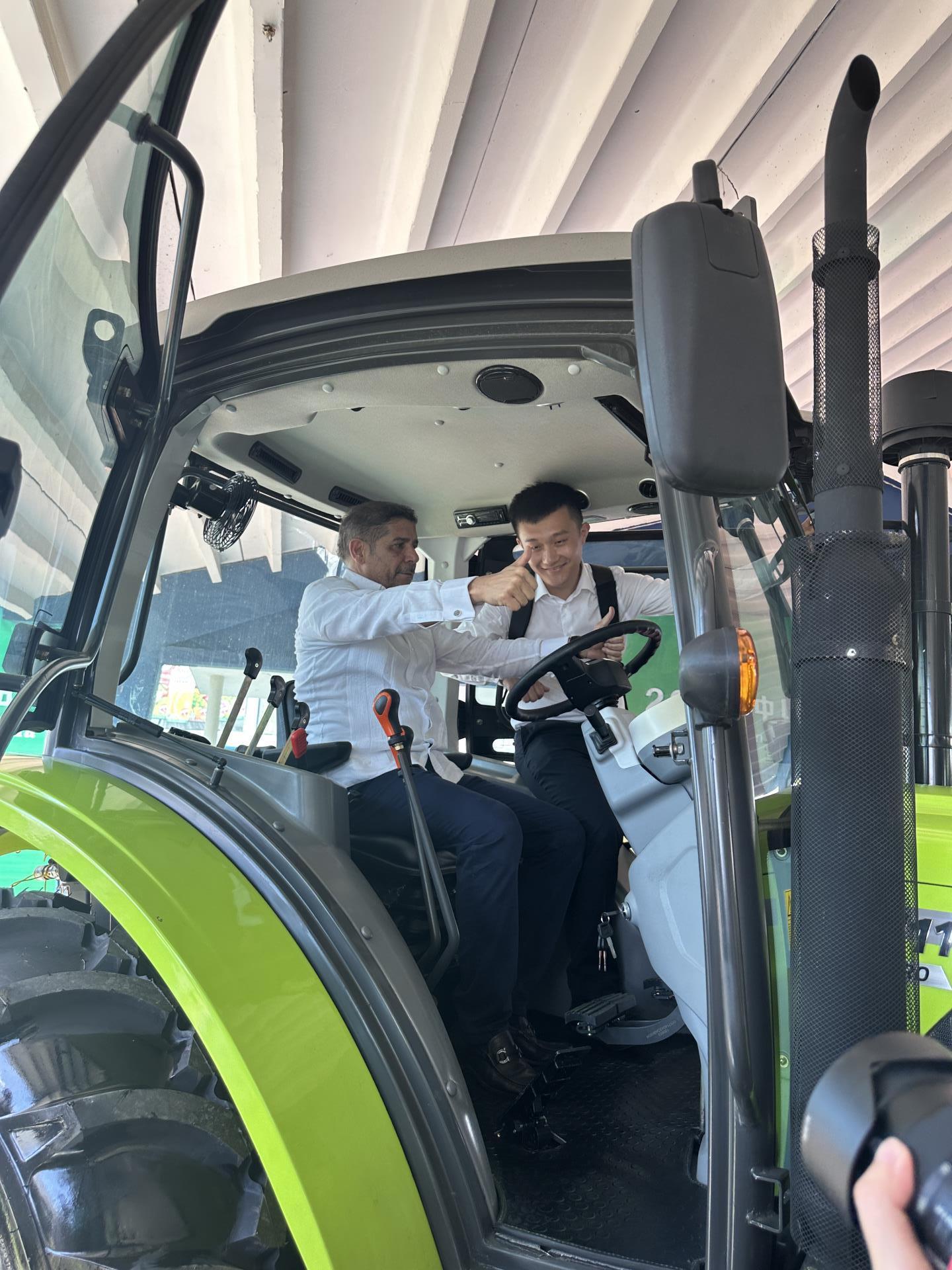 期間,多米尼加農(nóng)業(yè)部部長(zhǎng)林博·克魯斯饒有興致地登上中聯(lián)重科RN1104拖拉機(jī)駕駛室,他摸了摸方向盤、試了試操作桿,在親自體驗(yàn)中聯(lián)重科產(chǎn)品品質(zhì)后,他高興地豎起兩個(gè)大拇指稱贊道“Muy bien(很好)!”