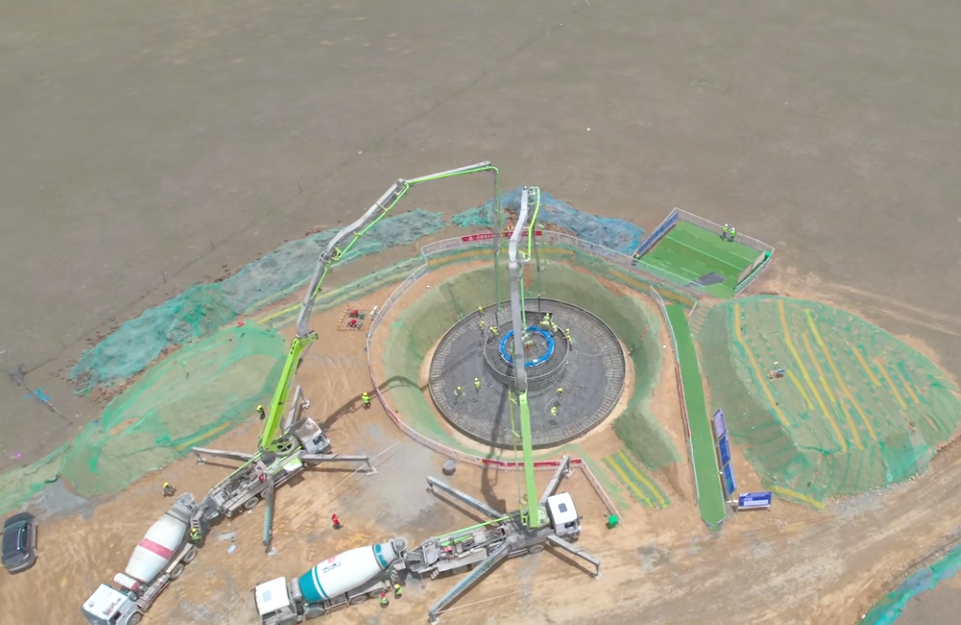 △中聯(lián)重科泵車助力項目風機基礎澆筑