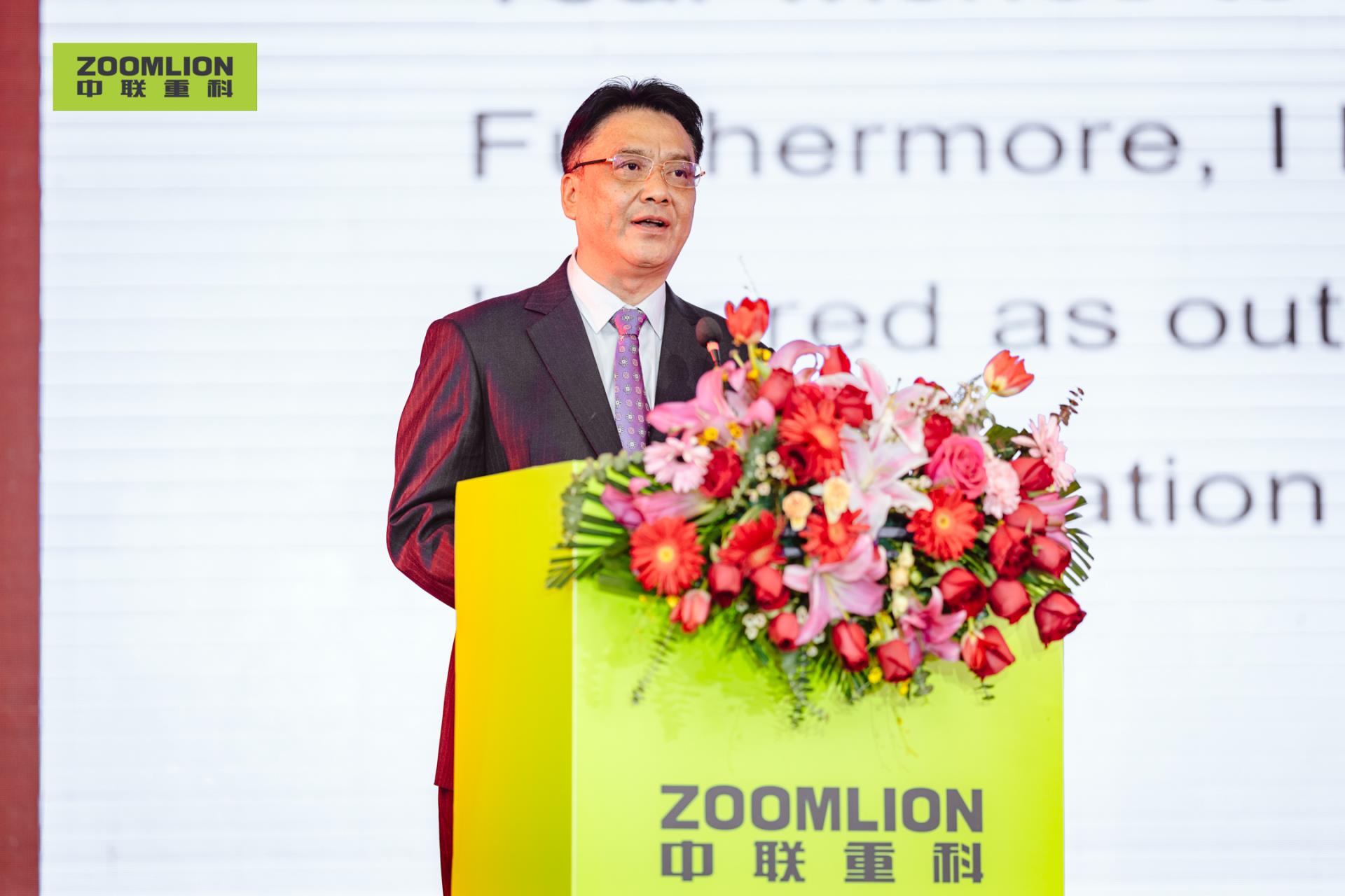▲中聯(lián)重科聯(lián)席總裁、中聯(lián)重科工程起重機(jī)公司總經(jīng)理羅凱在現(xiàn)場(chǎng)發(fā)言