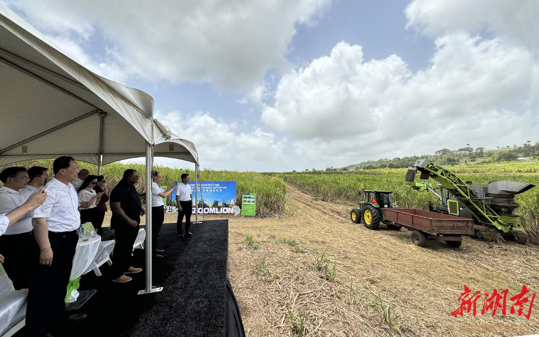 21日當(dāng)天,毛偉明與代表團(tuán)還調(diào)研了中聯(lián)重科與巴巴多斯合作甘蔗基地。在中聯(lián)重科與BAMC農(nóng)機(jī)及智慧農(nóng)業(yè)合作項(xiàng)目現(xiàn)場,當(dāng)?shù)剞r(nóng)業(yè)部門負(fù)責(zé)人介紹,由中聯(lián)重科捐贈(zèng)的甘蔗收割機(jī)大大提高了甘蔗收割和秸稈利用效率,“一臺機(jī)器相當(dāng)于40個(gè)工人,效果‘very good’(非常好)!”毛偉明指出,要充分發(fā)揮湖南農(nóng)機(jī)裝備產(chǎn)業(yè)優(yōu)勢,因地制宜提升農(nóng)機(jī)裝備的機(jī)械化、自動(dòng)化、數(shù)字化水平,研發(fā)打造“甘蔗”版聯(lián)合收割機(jī),以高水平科技創(chuàng)新助推農(nóng)業(yè)國際合作高水平發(fā)展。