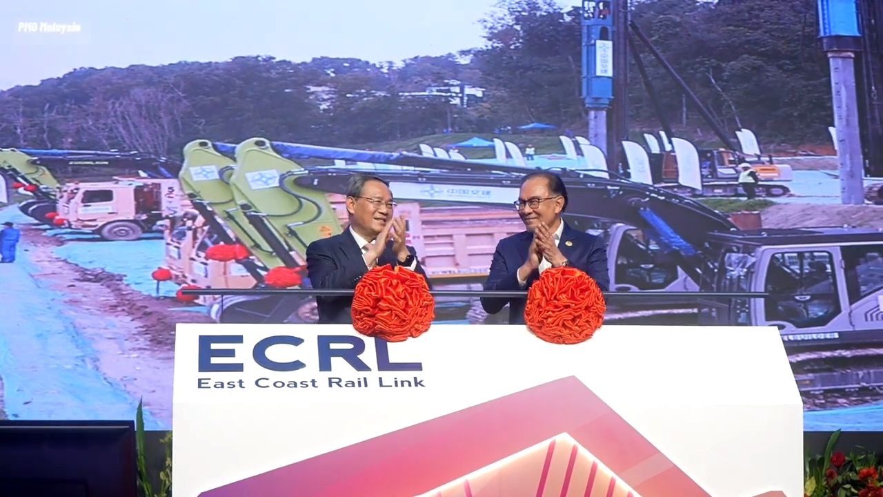 △中馬兩國(guó)總理共同推桿,正式啟動(dòng)鵝嘜車站建設(shè)(圖片來源:馬來西亞總理辦公室)