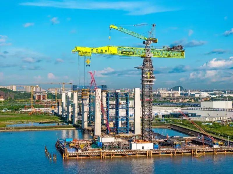 ▲中聯(lián)重科全球**大塔機佇立獅子洋大橋建設(shè)現(xiàn)場(圖片來源于公眾號“廣東交通”)