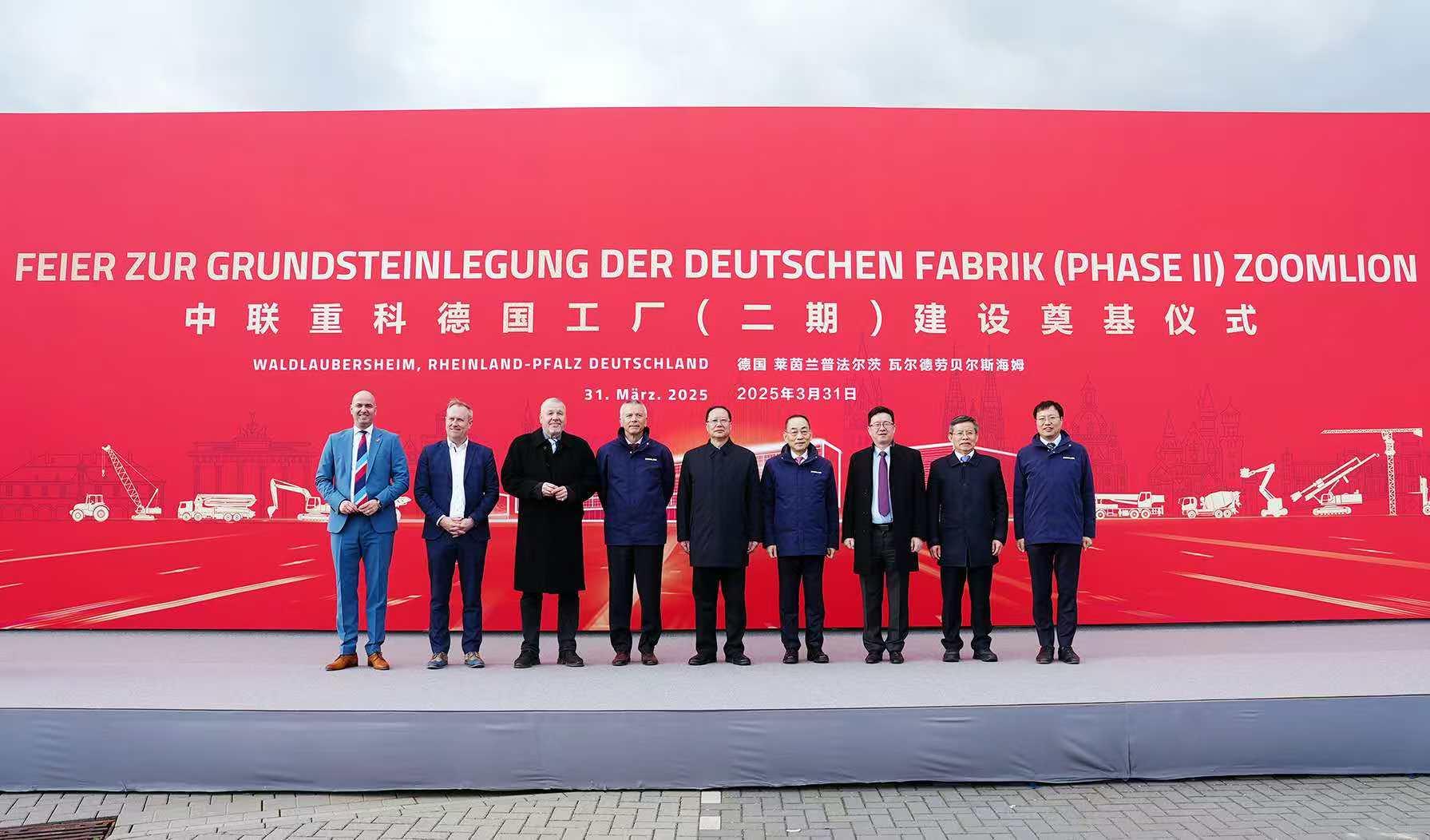 當(dāng)?shù)貢r(shí)間3月31日,中聯(lián)重科德國(guó)工廠二期奠基儀式在德國(guó)瓦爾德勞貝爾斯海姆舉行,將擴(kuò)建廠房進(jìn)行產(chǎn)業(yè)拓展升級(jí),打造集產(chǎn)品展示、銷售、生產(chǎn)和服務(wù)于一體的綜合性海外生產(chǎn)基地,持續(xù)加速企業(yè)全球化發(fā)展。率湖南省代表團(tuán)訪問(wèn)德國(guó)的湖南省委副書(shū)記、省長(zhǎng)毛偉明,德國(guó)聯(lián)邦議院議員喬·溫加頓博士,中國(guó)駐法蘭克??傤I(lǐng)事黃昳揚(yáng),中聯(lián)重科董事長(zhǎng)、CEO詹純新出席并致辭。