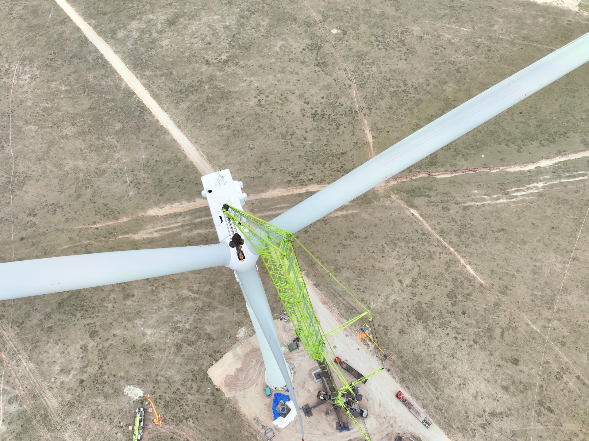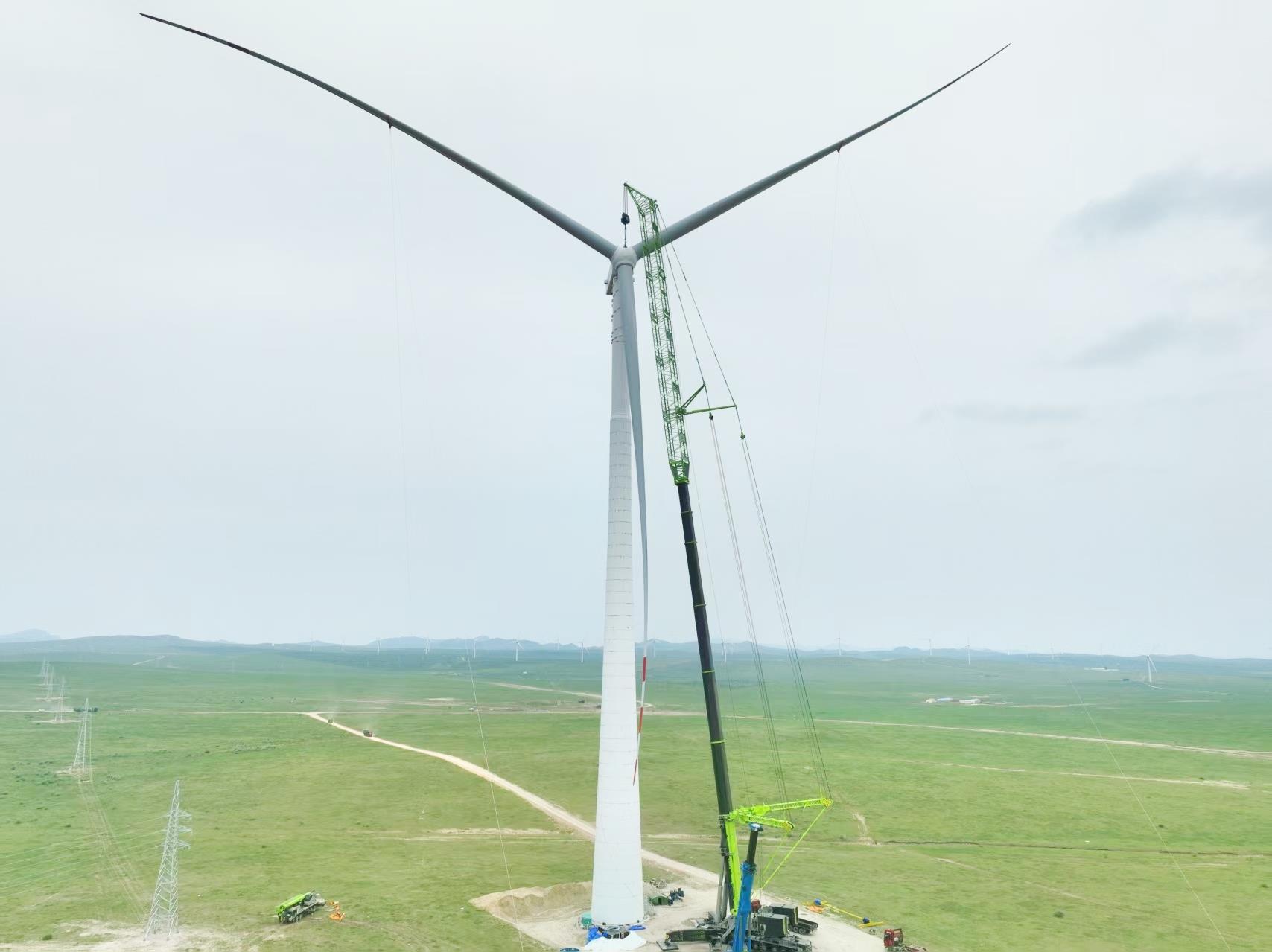 內(nèi)蒙古能源阿魯科爾沁100萬千瓦風(fēng)儲(chǔ)基地項(xiàng)目,是國(guó)家**三批“沙戈荒”大型風(fēng)電基地建設(shè)項(xiàng)目,項(xiàng)目采用單機(jī)容量10兆瓦的陸上風(fēng)電機(jī)組,以及140米高的混塔技術(shù),吊裝難度和要求很高。