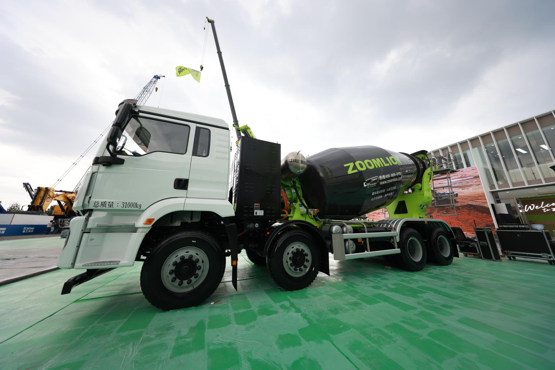 不遠處,中聯重科“凌冠”純電動攪拌車靜靜展示其零排放、低噪音的環(huán)保特性。工作人員介紹,該車綜合電耗僅1.5度/公里,支持雙槍快充,防水性能通過1.2米涉水驗證,確保在各種惡劣天氣下安全可靠運行,即使在城市夜間施工也可輕松滿足需求。其搭載的AI視覺盲區(qū)檢測系統(tǒng)等,可實現智能防撞與疲勞駕駛預警,觀眾紛紛感嘆其科技感十足。