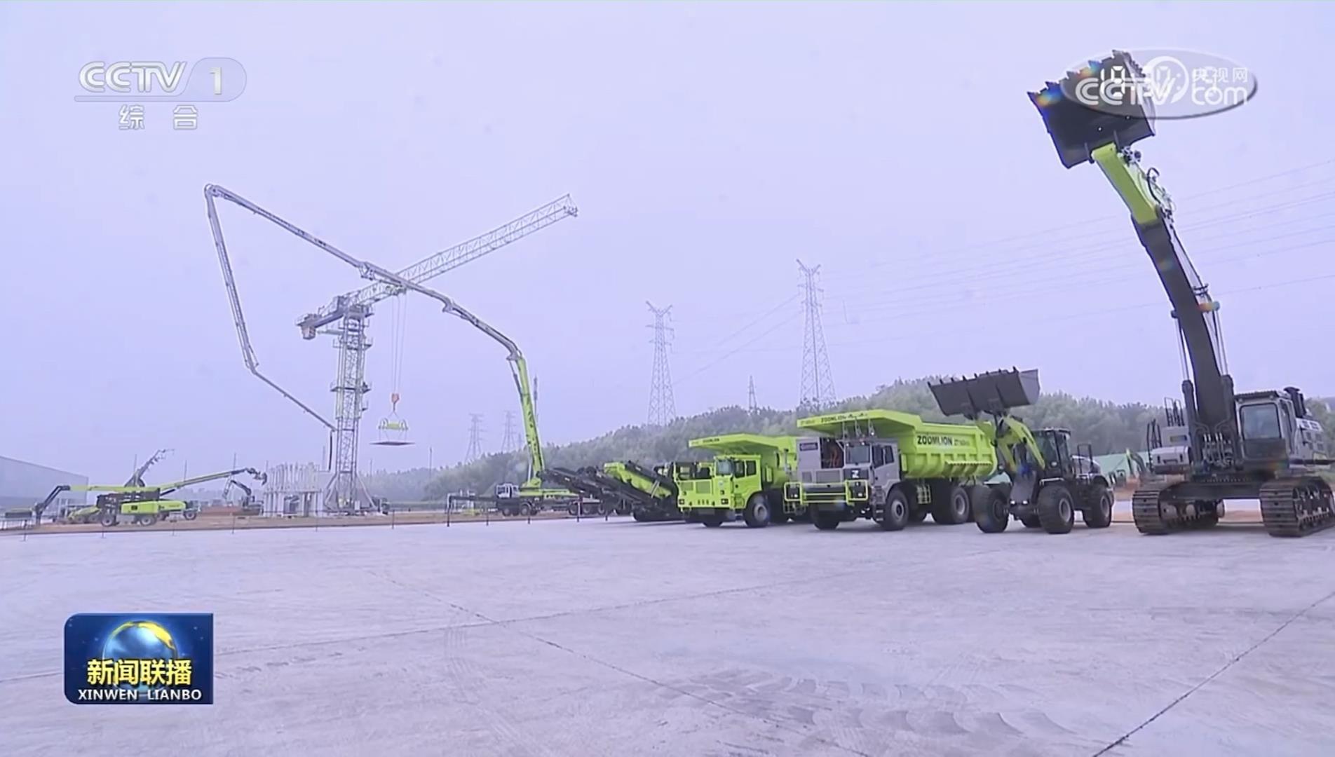 ▲現(xiàn)場(chǎng)展示的中聯(lián)重科產(chǎn)品集群