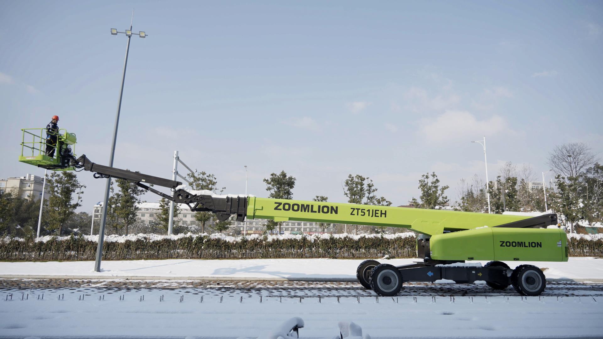 其中,中聯(lián)重科直臂式高空作業(yè)平臺ZT51JEH通過獨創(chuàng)的可油可電雙工作模式直擊行業(yè)痛點,在城區(qū)建筑群、室內(nèi)廠房等環(huán)保要求高的場景中,可切換純電模式實現(xiàn)零排放、低噪音作業(yè);進(jìn)入野外無電網(wǎng)覆蓋的基建現(xiàn)場時,又能通過燃油供電保障設(shè)備持續(xù)運(yùn)轉(zhuǎn),滿油滿電狀態(tài)下可續(xù)航7天以上,徹底解決了純電動高空設(shè)備“續(xù)航焦慮”。此外,ZT51JEH搭載低電壓平臺動力系統(tǒng),從源頭降低電氣安全風(fēng)險,并結(jié)合超載保護(hù)、傾角預(yù)警、緊急停機(jī)等20余項全方位安全防護(hù)關(guān)鍵功能,構(gòu)建起多重安全屏障,讓高空作業(yè)更可靠、更安心。