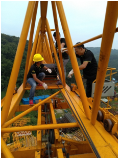 ▲小分隊成員在發(fā)現(xiàn)鋼絲繩跳槽問題后立馬進行了處理