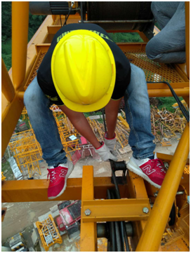▲小分隊成員與塔機師傅交談,仔細檢查設備的每個環(huán)節(jié)?