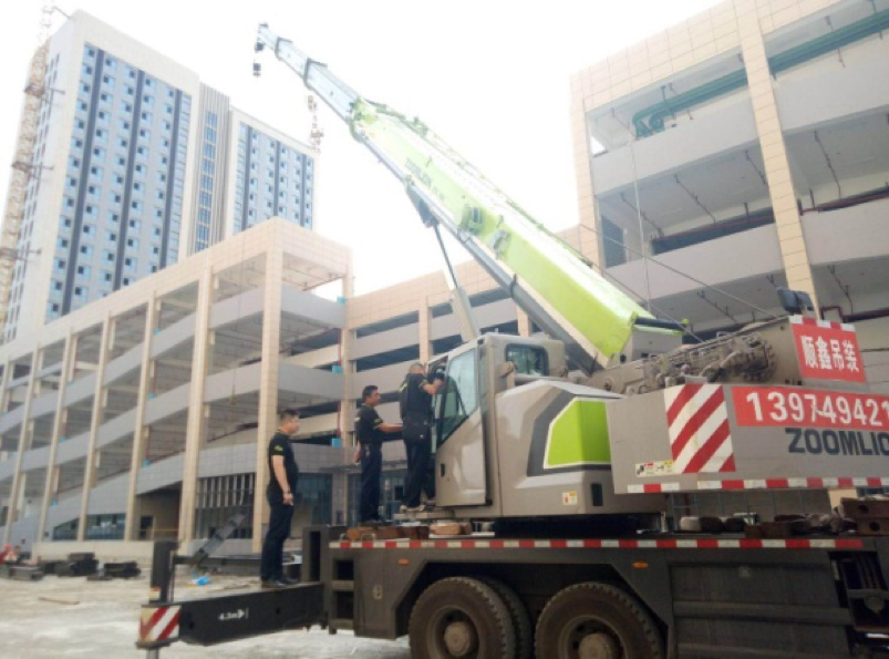 在簡單的午餐后,小分隊再趕往該公司的**二個工地,檢查一臺2009年交付的70T履帶吊,該車在工地吊裝鋼筋籠、澆灌混凝土,對電氣、液壓、結構件進行了例檢,發(fā)現行走驅動輪、履帶板磨損較大,將常規(guī)保養(yǎng)和日常操作等告知了設備主管。