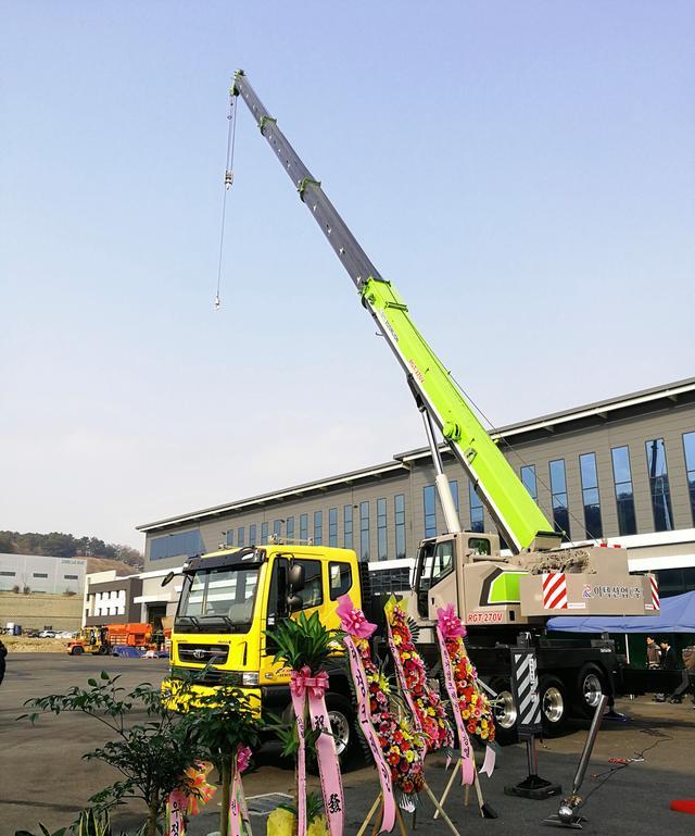 ▲搭載韓國(guó)大宇底盤(pán)的RGT-270V 25噸汽車起重機(jī)。